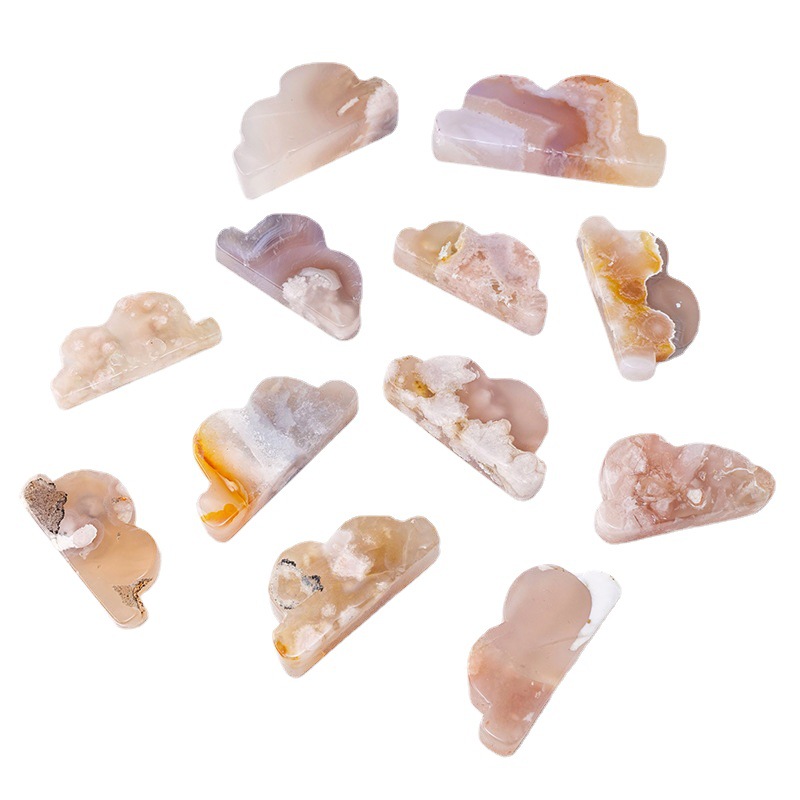 天然樱花玛瑙云朵雕刻件水晶原石玛瑙矿石标本家居桌面装饰摆件