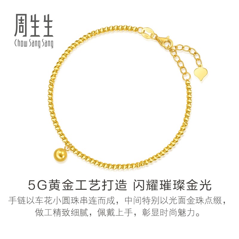周生生Essence永车花小圆珠碎碎金黄金手链足金蹦迪珠手链93855B