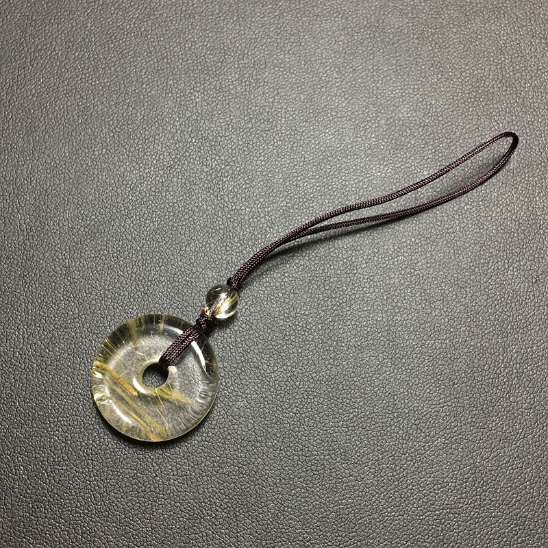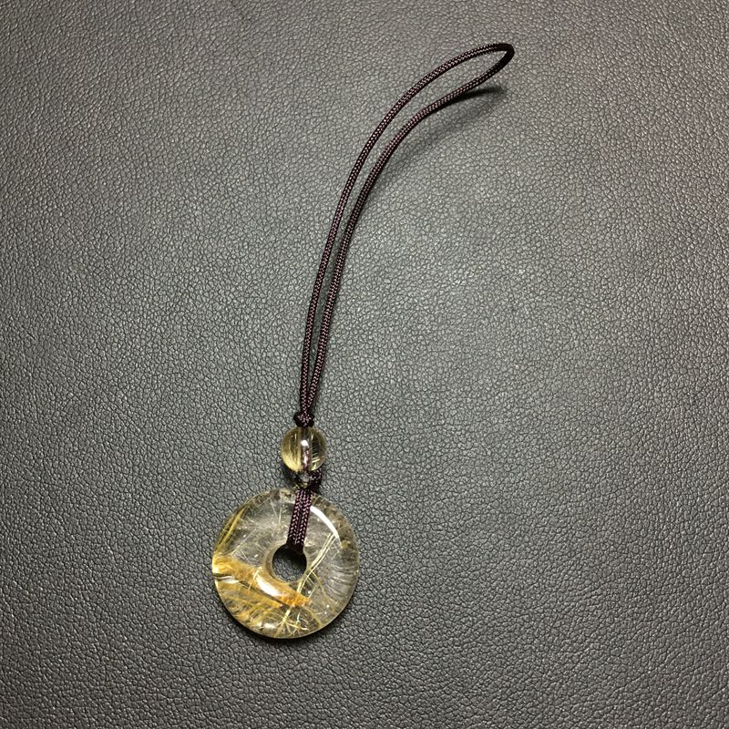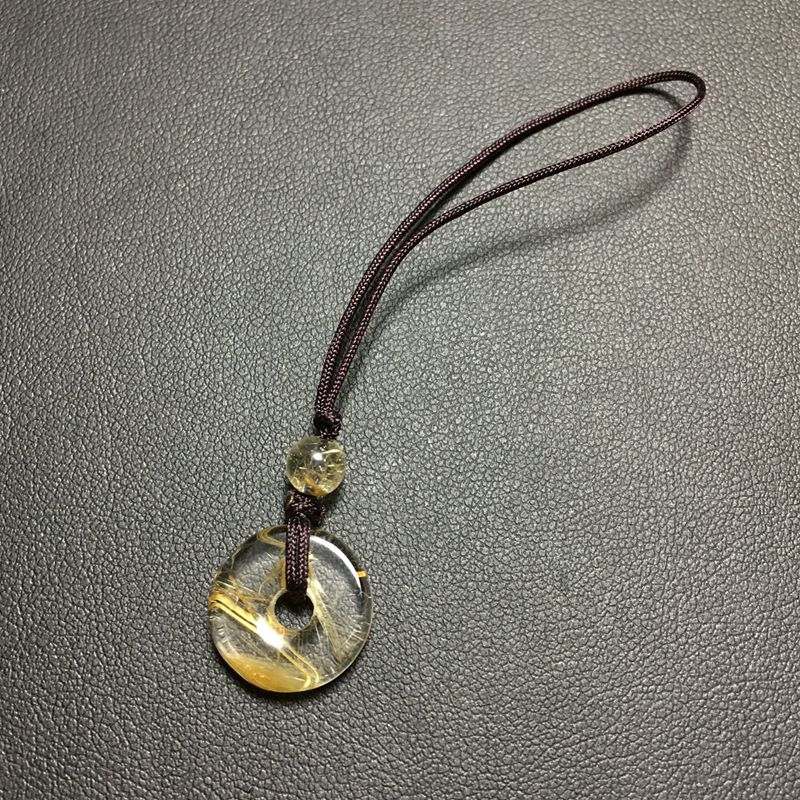 天然金发晶钛金平安扣手机坠钥匙扣小包挂吊坠一物一图实物实拍男