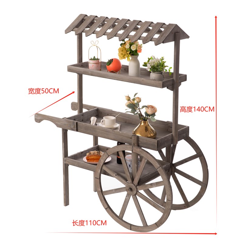 大型实木花车花架置物架花店装饰别墅陈列展示室内外移动推车田园