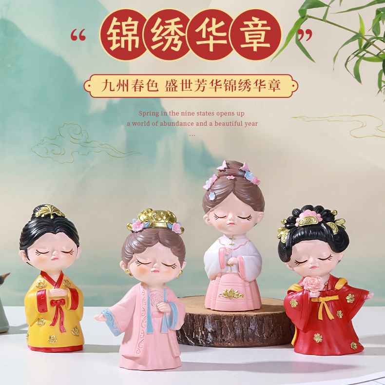 古风年锦小摆件树脂桌面家居车载工位装饰国潮文创手办小公仔礼品