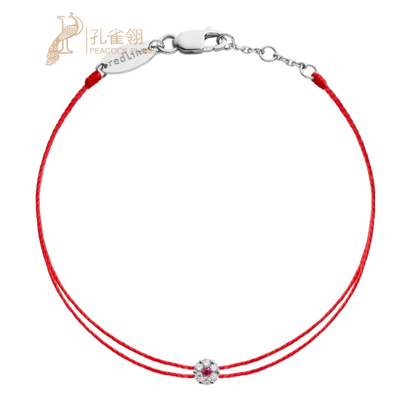 Redline/红绳女士0.05克拉圆形钻石粉蓝宝石白金双绳手链