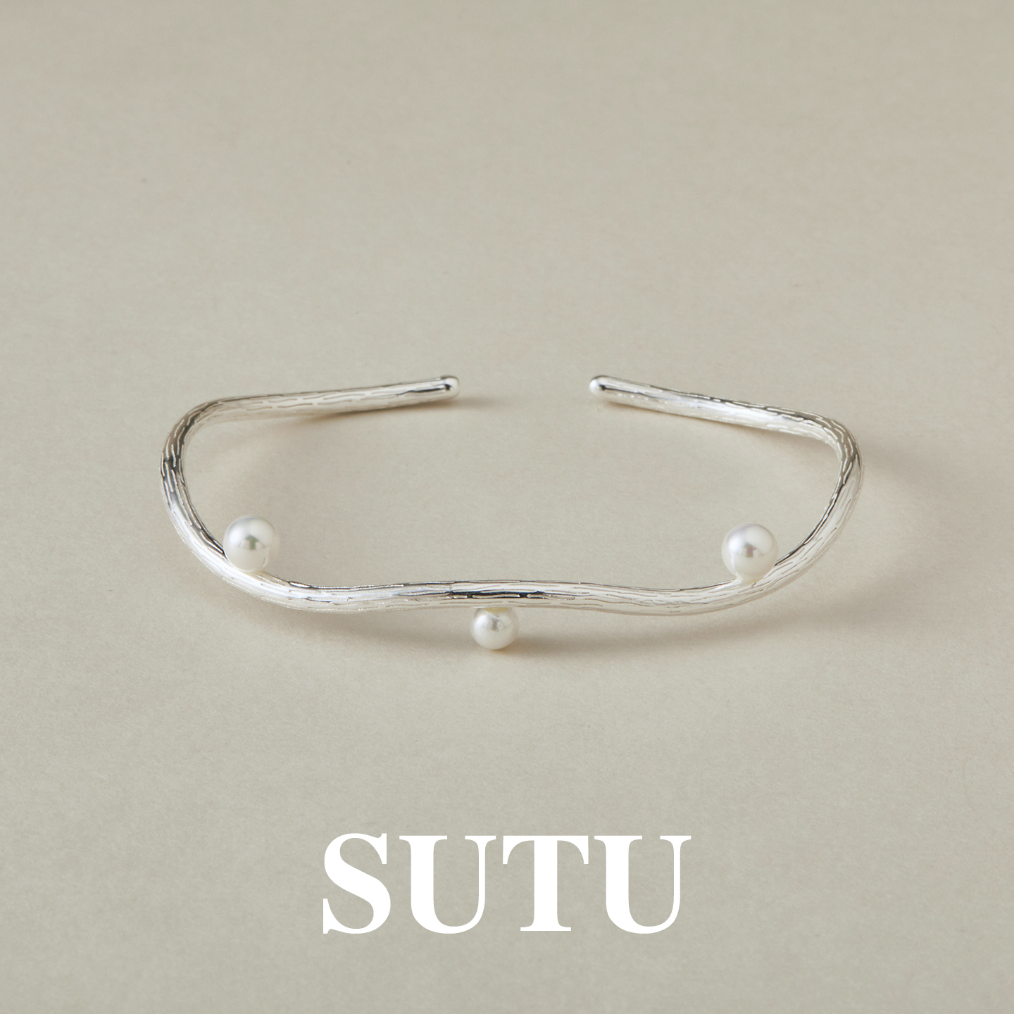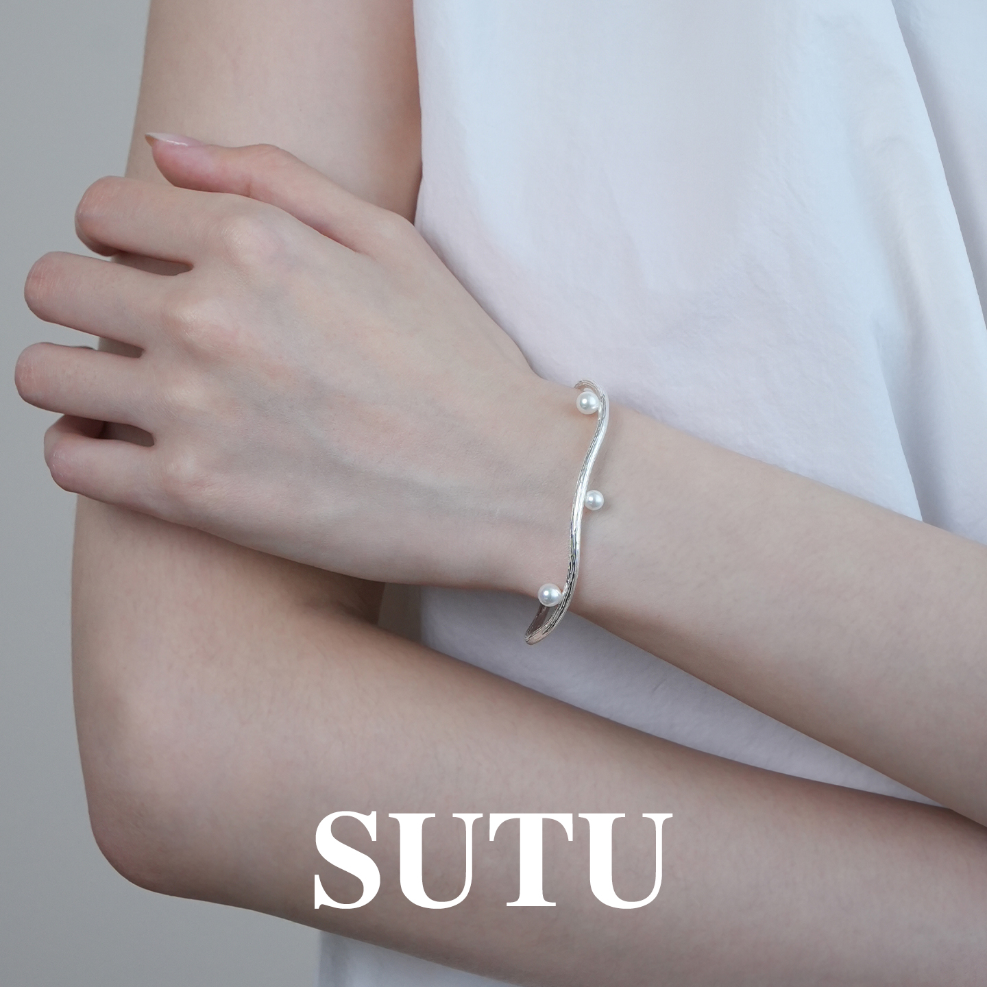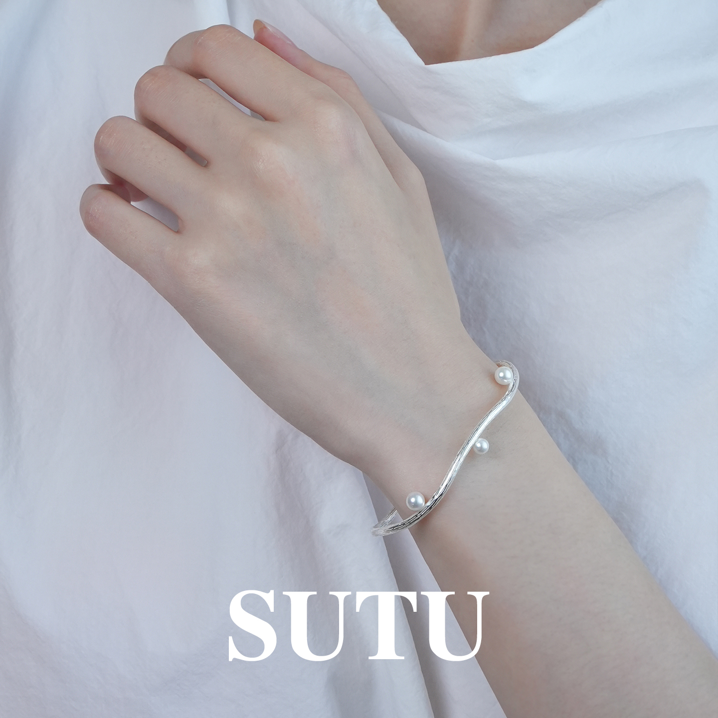 素图藤蔓施家珍珠手镯925银不规则轻奢小众设计高级实心开口银镯