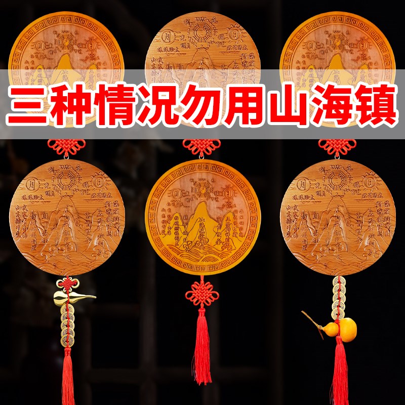 桃木山海镇八卦镜木雕雕刻挂件室内摆件客厅家用室外大门房屋装饰