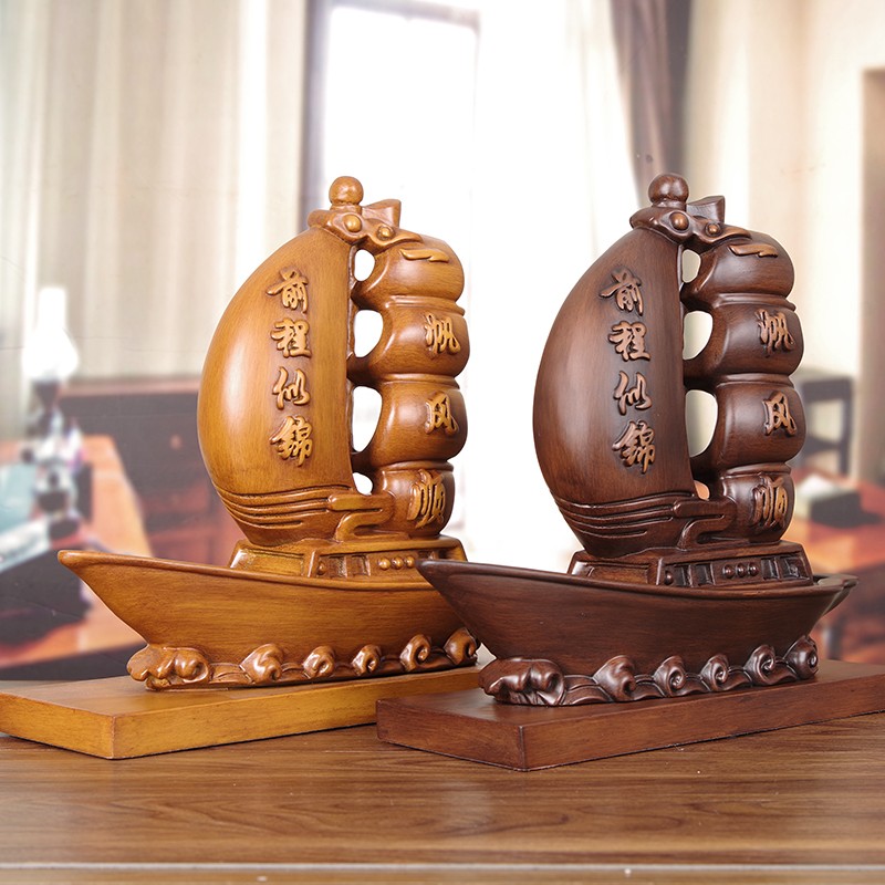 实木雕一帆风顺帆船摆件公司开业生日礼品船模型客厅办公室船装饰