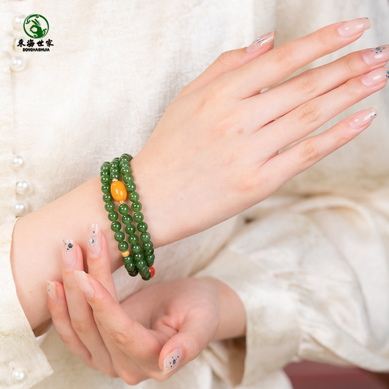 碧玉手串东海南红玛瑙珍珠翡翠玉石蜜蜡米珠散珠子和田玉三圈手链