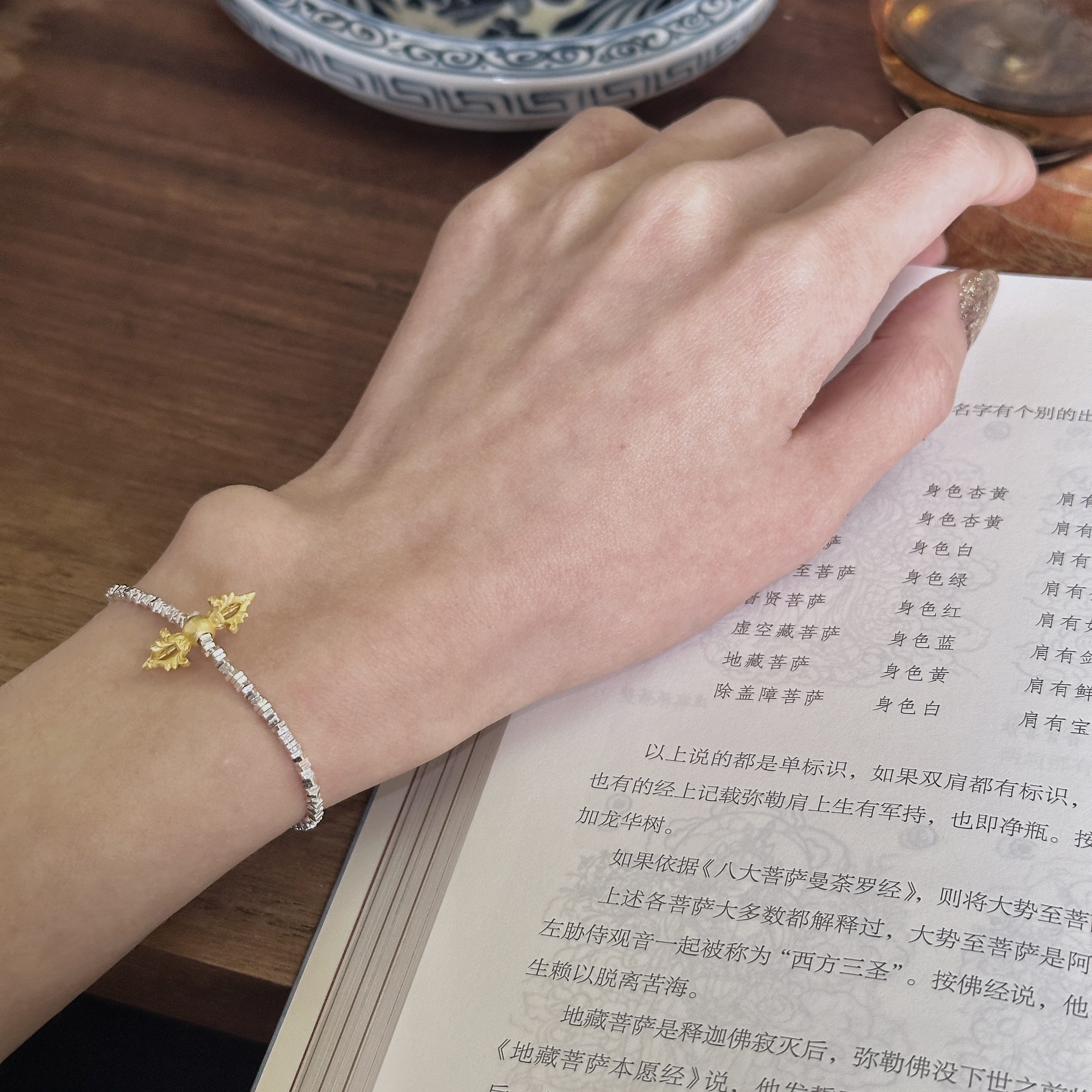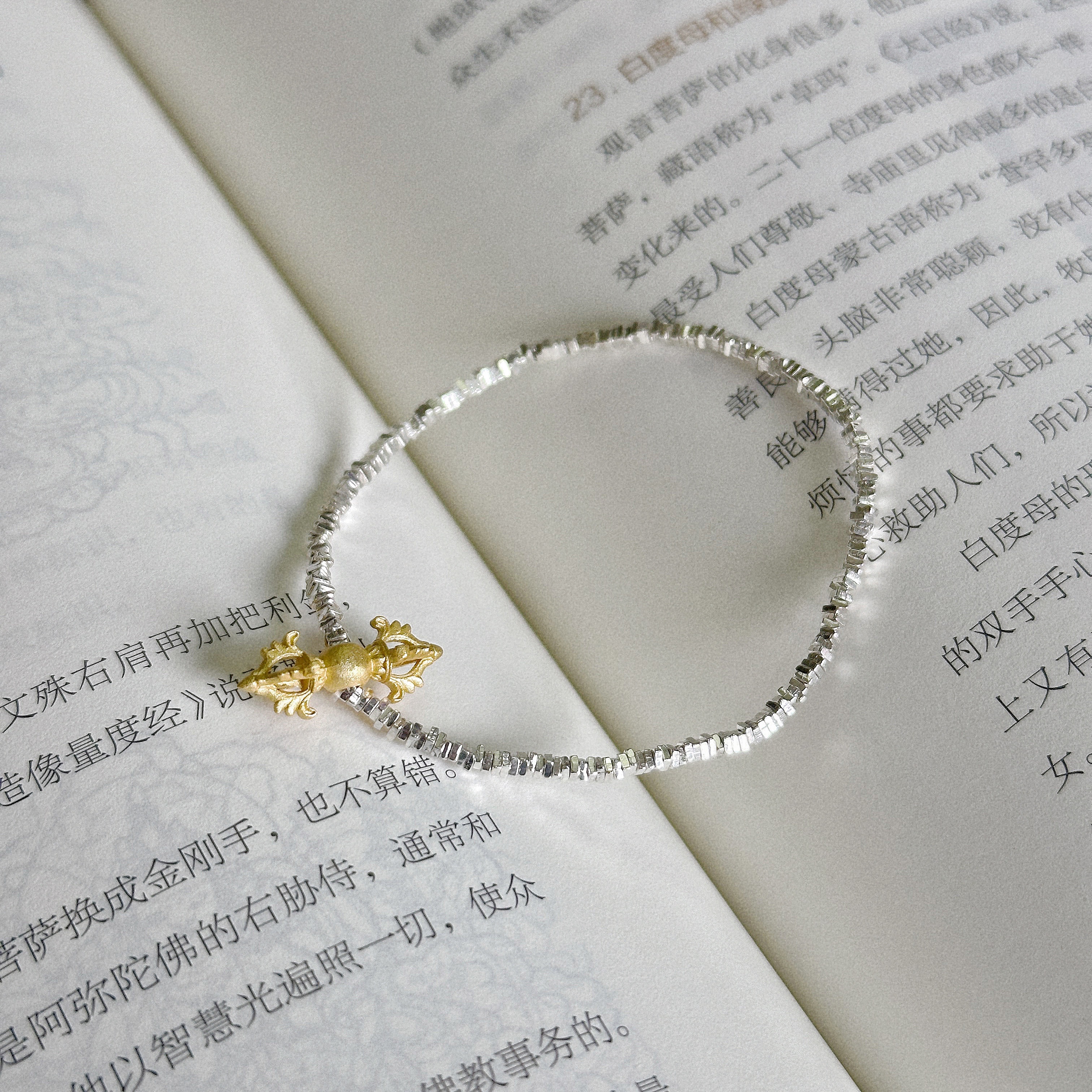 叶优里独家原创设计小众藏传金刚杵吊坠纯银S925碎银手链庄严