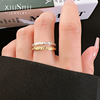 新款碎碎冰素圈叠戴925银戒指食指戒轻奢ins风排戒黄金色小众气质