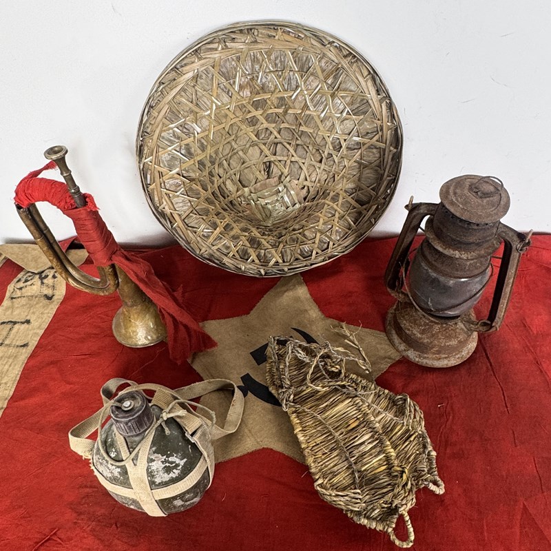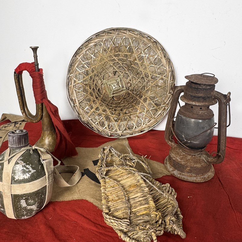 红色文化老物件工农冲锋号老式煤油灯草鞋J斗笠影视道具抗战革命
