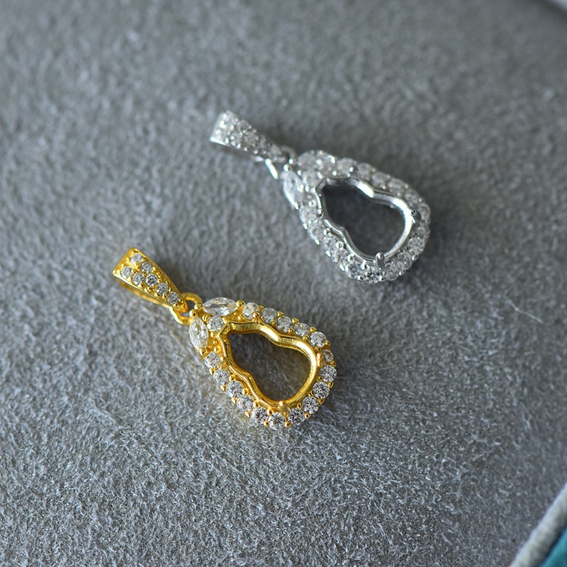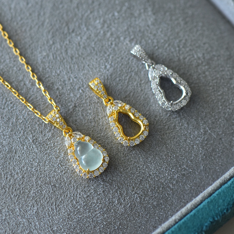 S925纯银吊坠空托时尚女款葫芦型四爪DIY蜜蜡松石水晶玉石镶嵌托