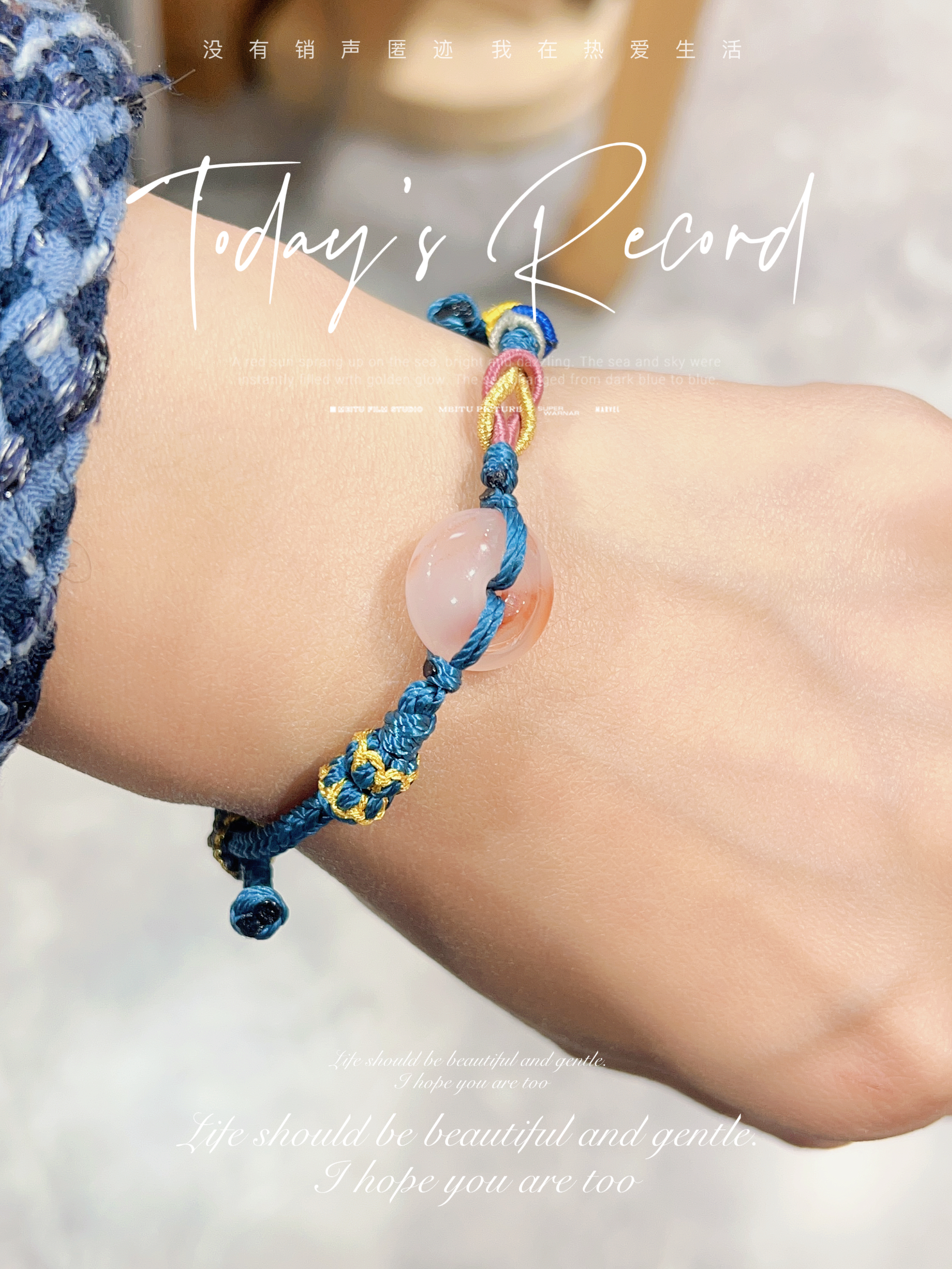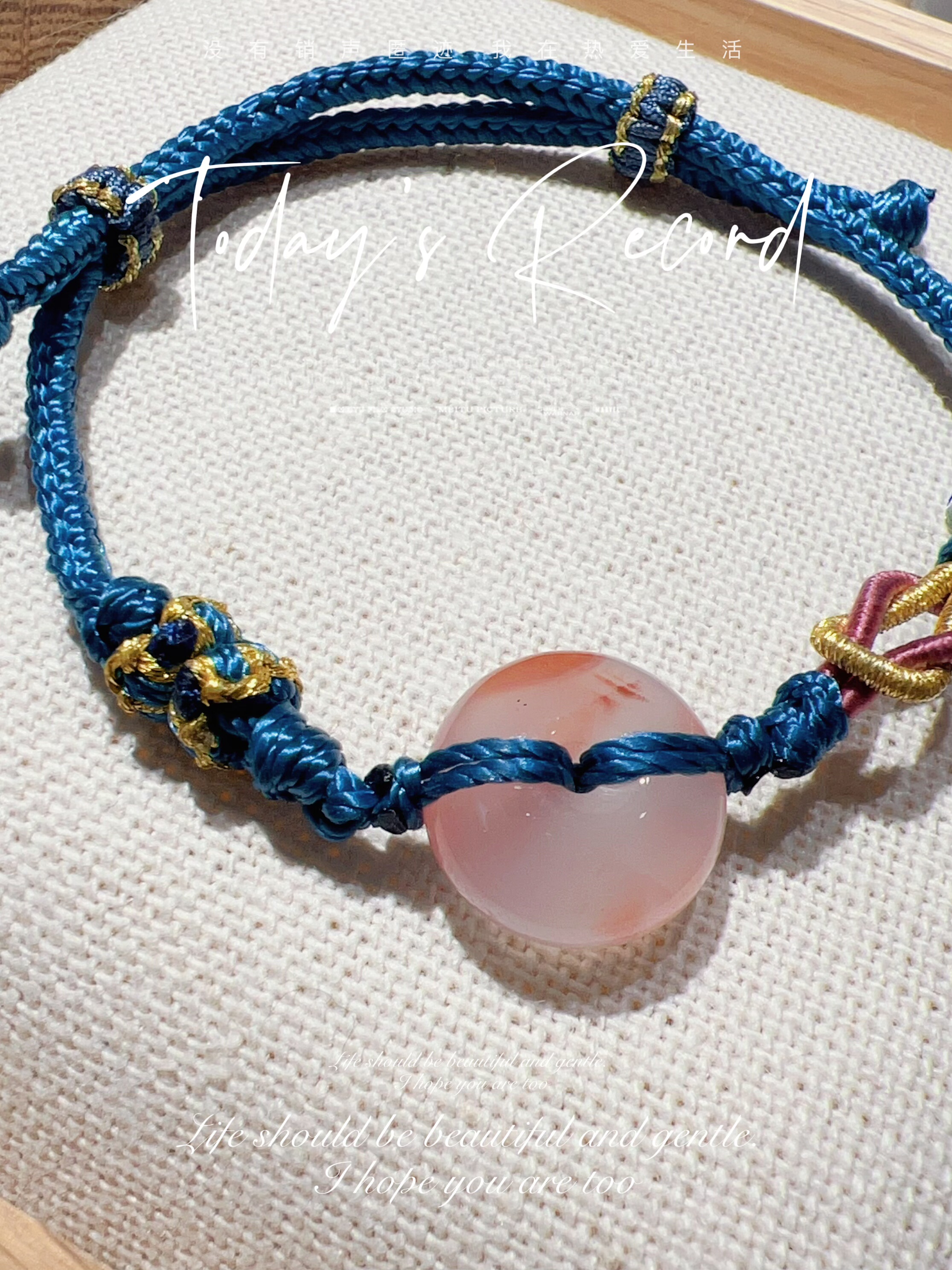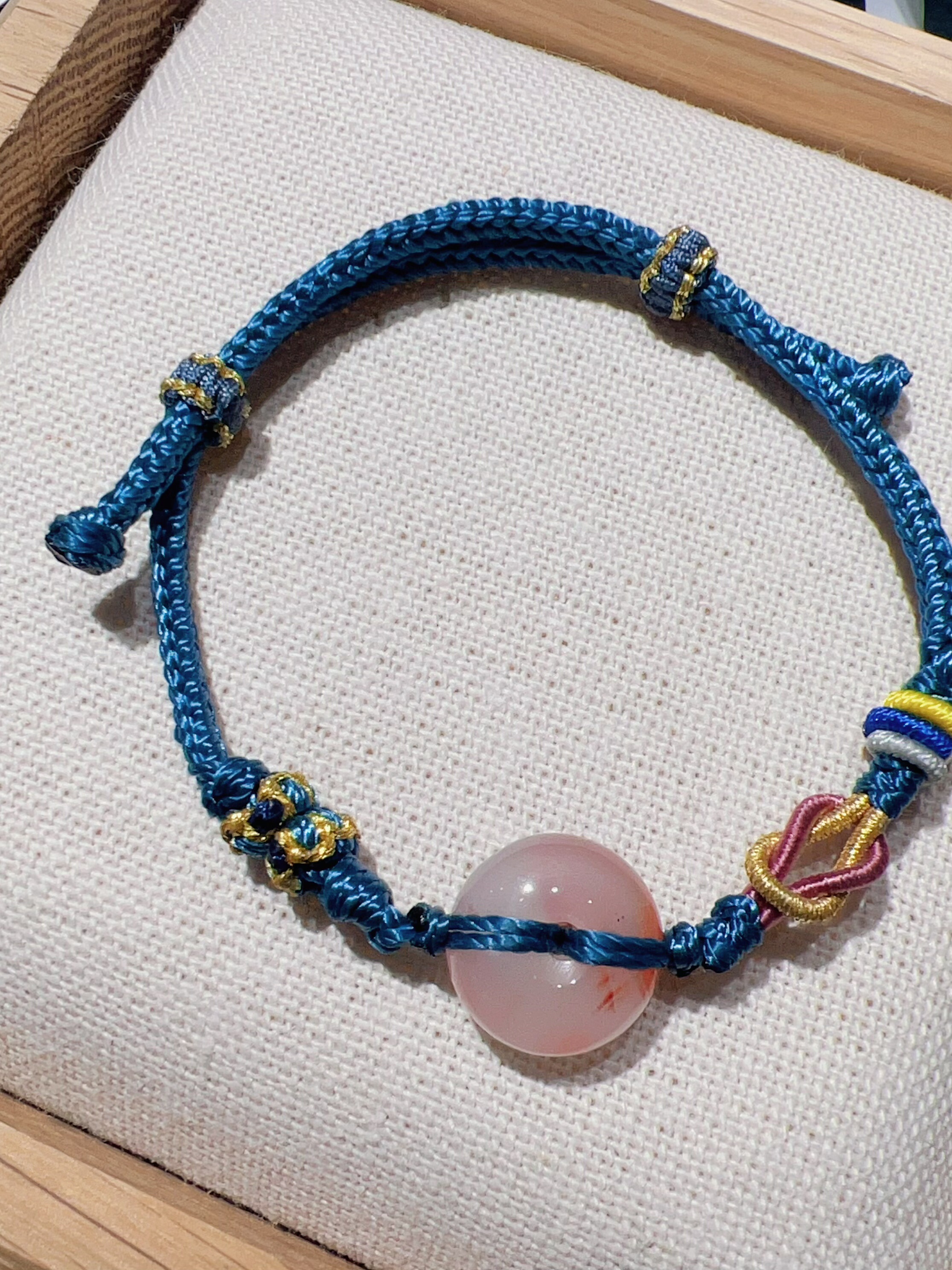 天然平安扣编绳手串冰飘花南红手链男女通用时尚简约中国风藏蓝色