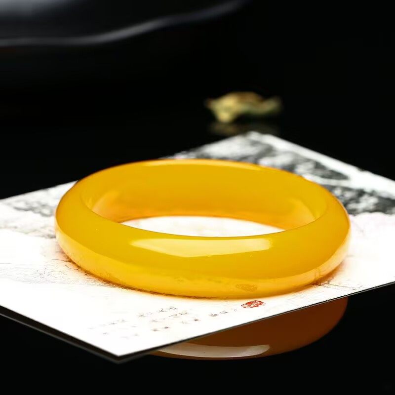 爆款黄色手镯冰透水润精美通透扁条气质女款手镯时尚百搭