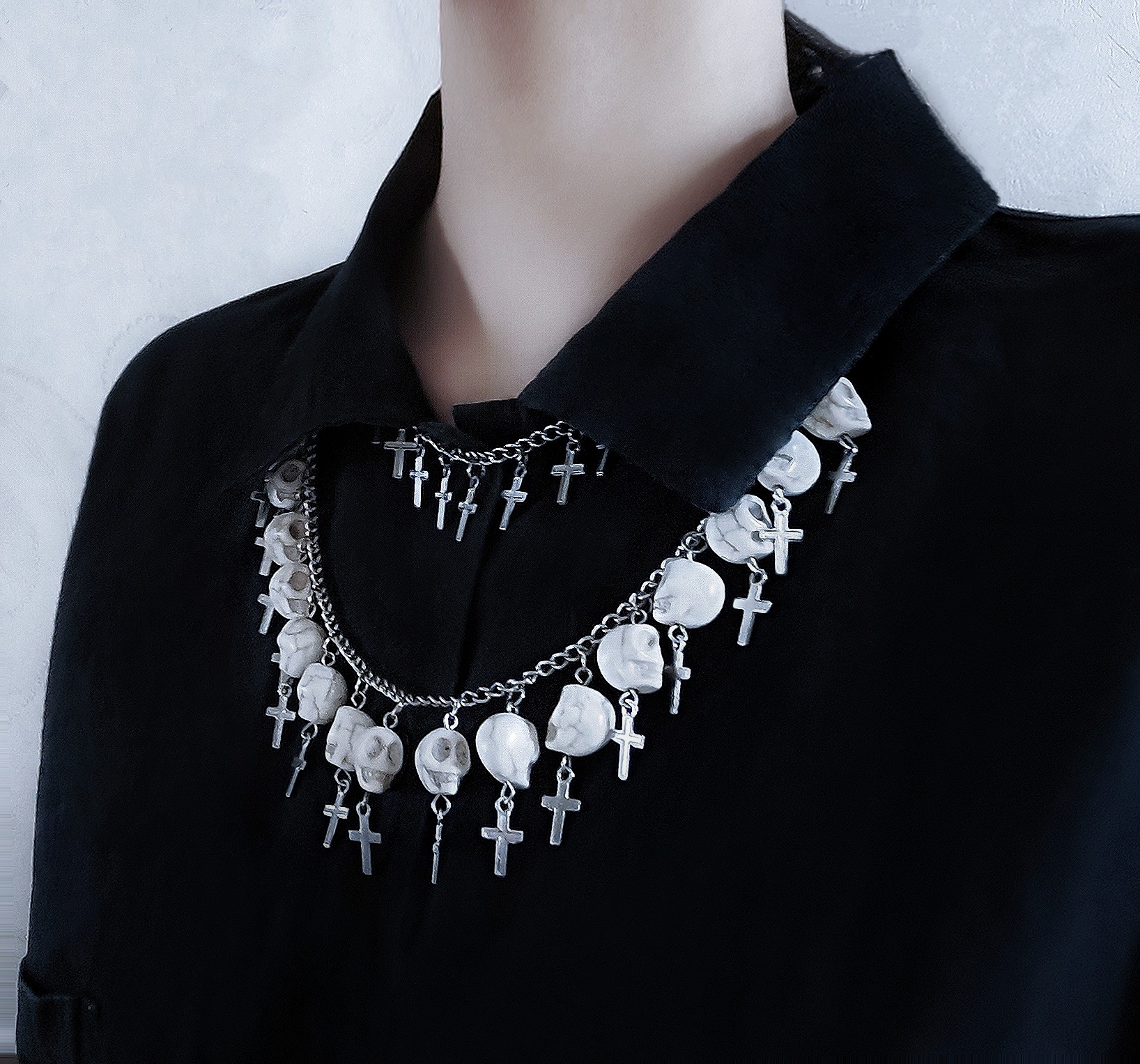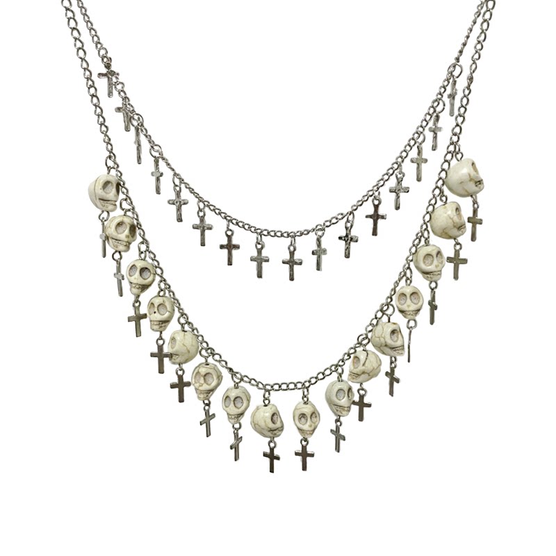 ETERNAL SUMMER骷髅头十字架暗黑朋克复古哥特欧美双层毛衣链项链