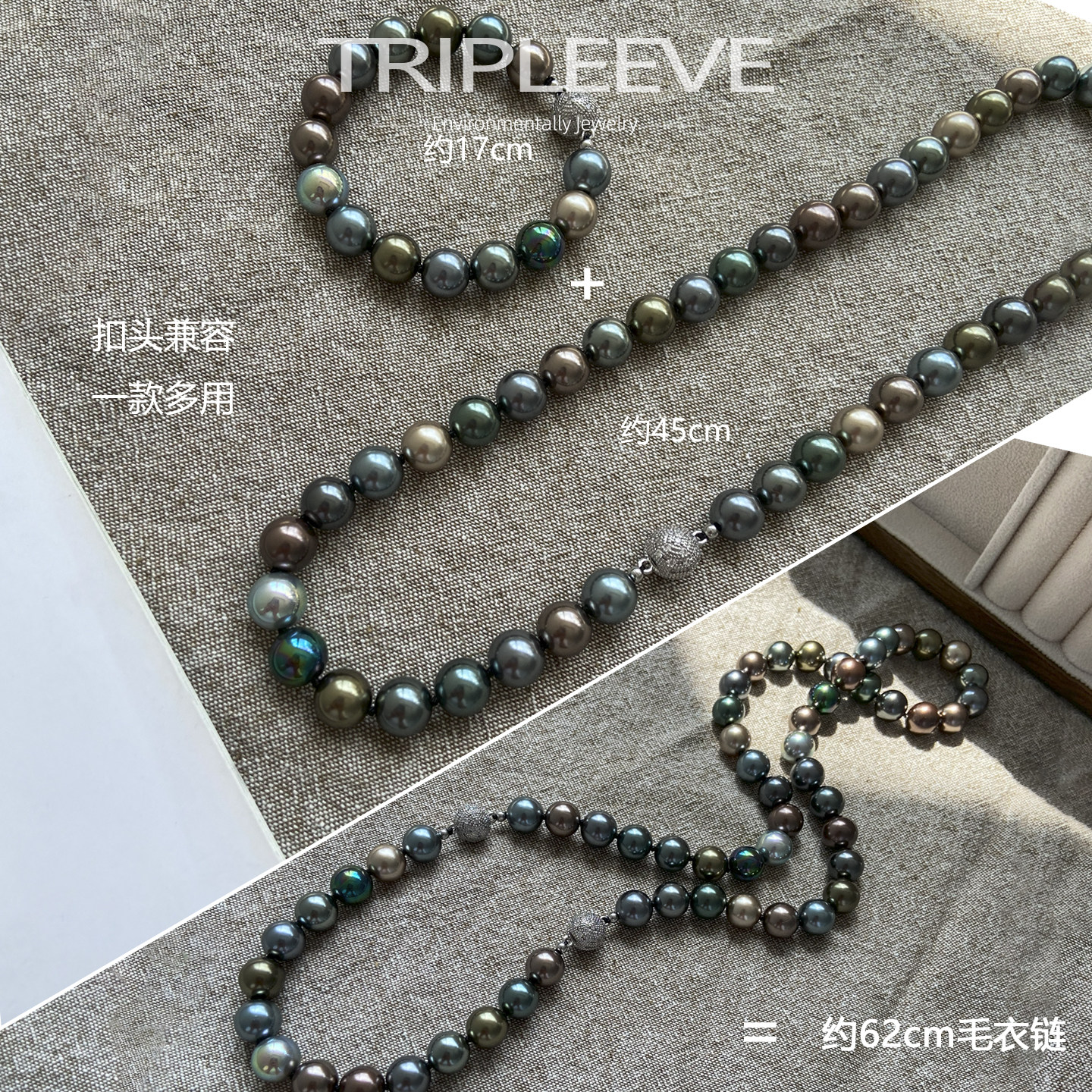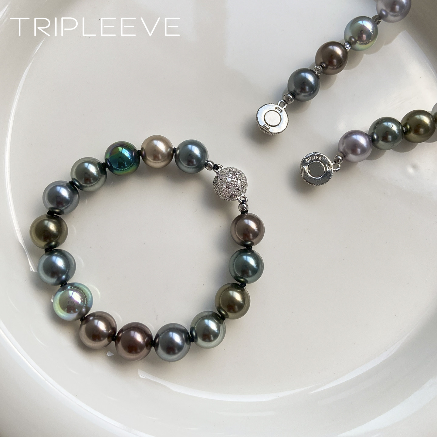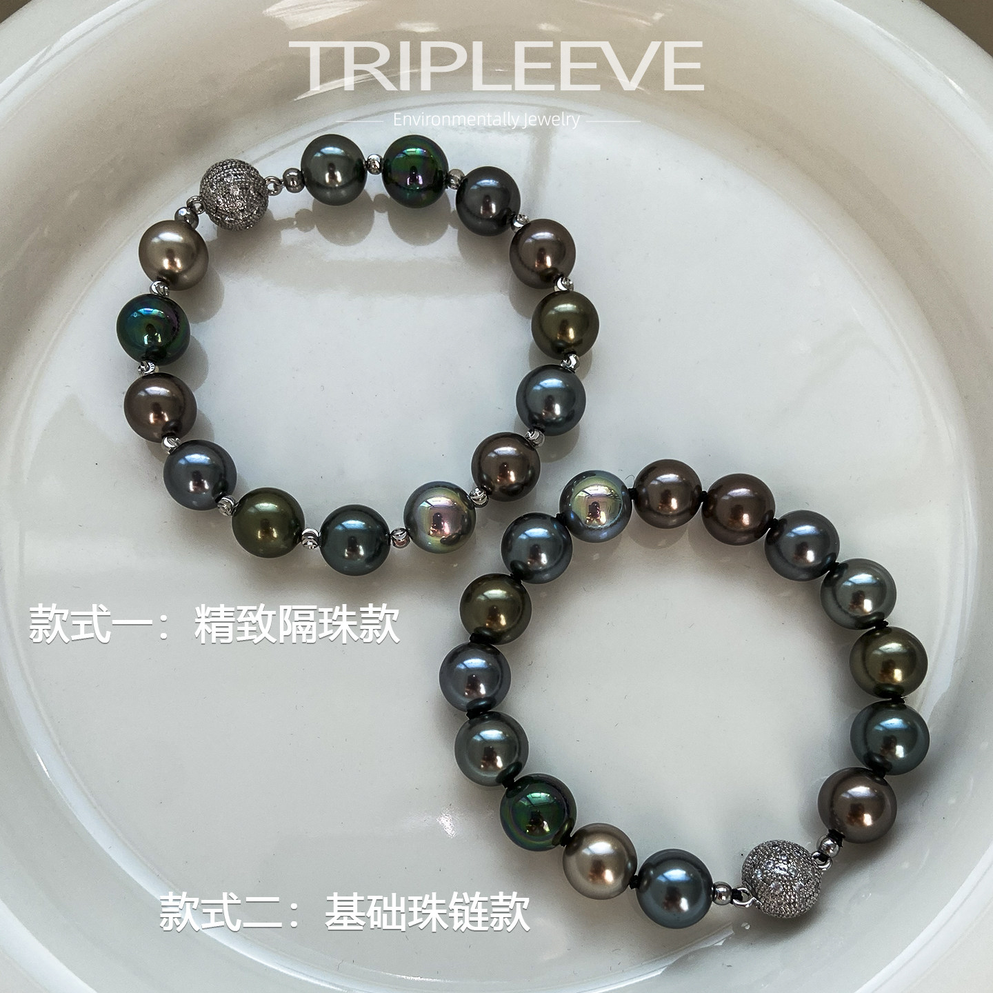 黑蝶皇后/珍珠手链大溪地混彩莫兰迪色黑珍珠张子枫同款项链套装