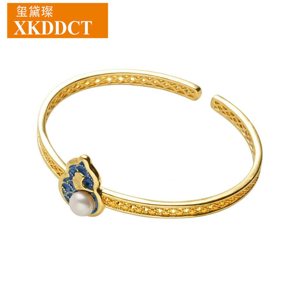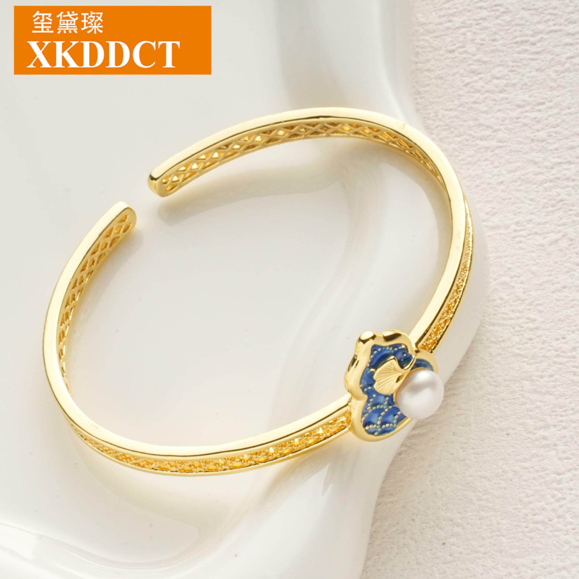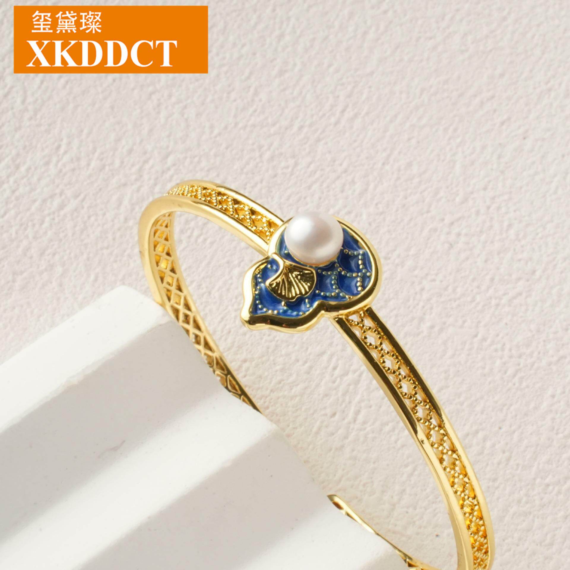 XKDDCT新款新中式蓝色葫芦珍珠手镯女开口设计气质轻奢百搭复古饰