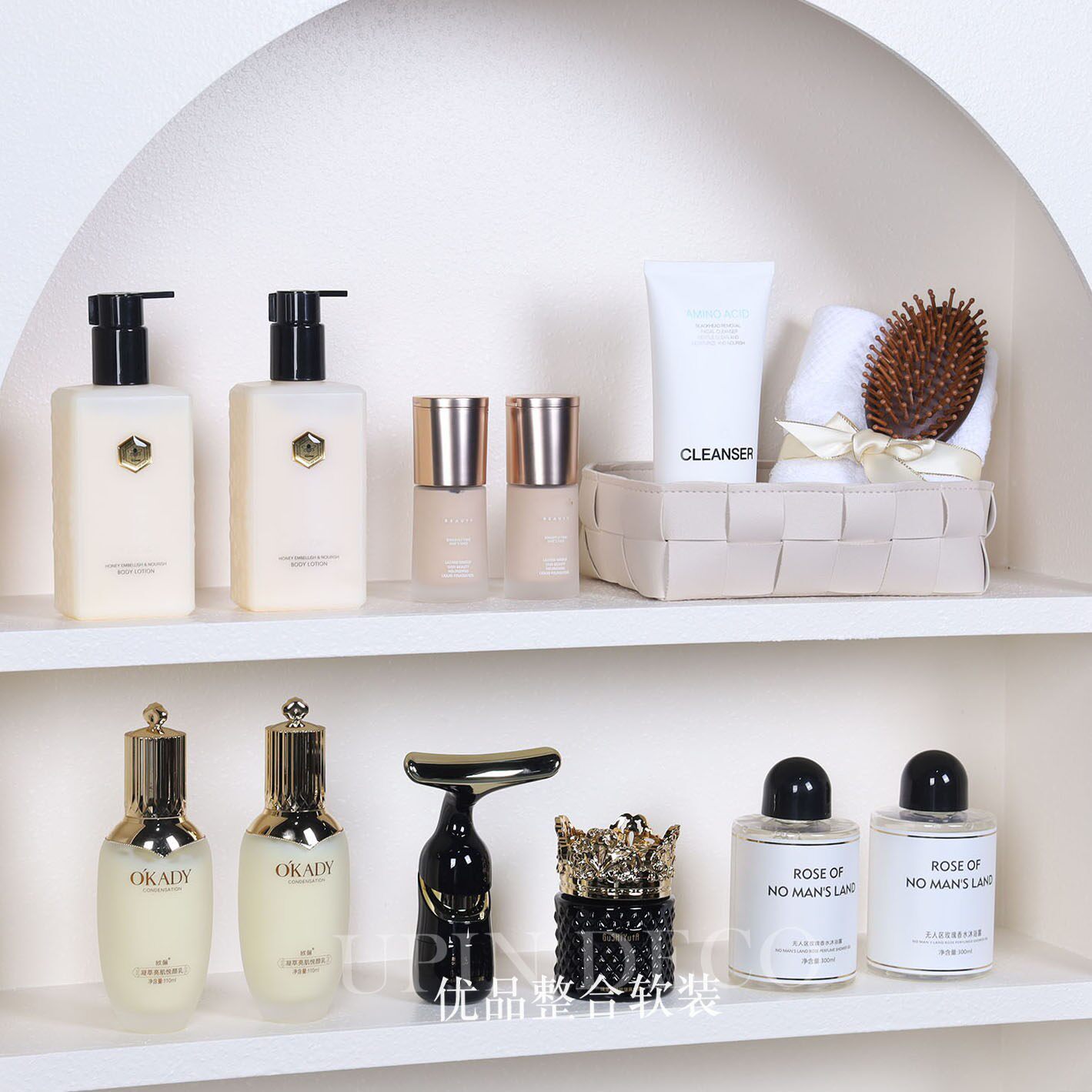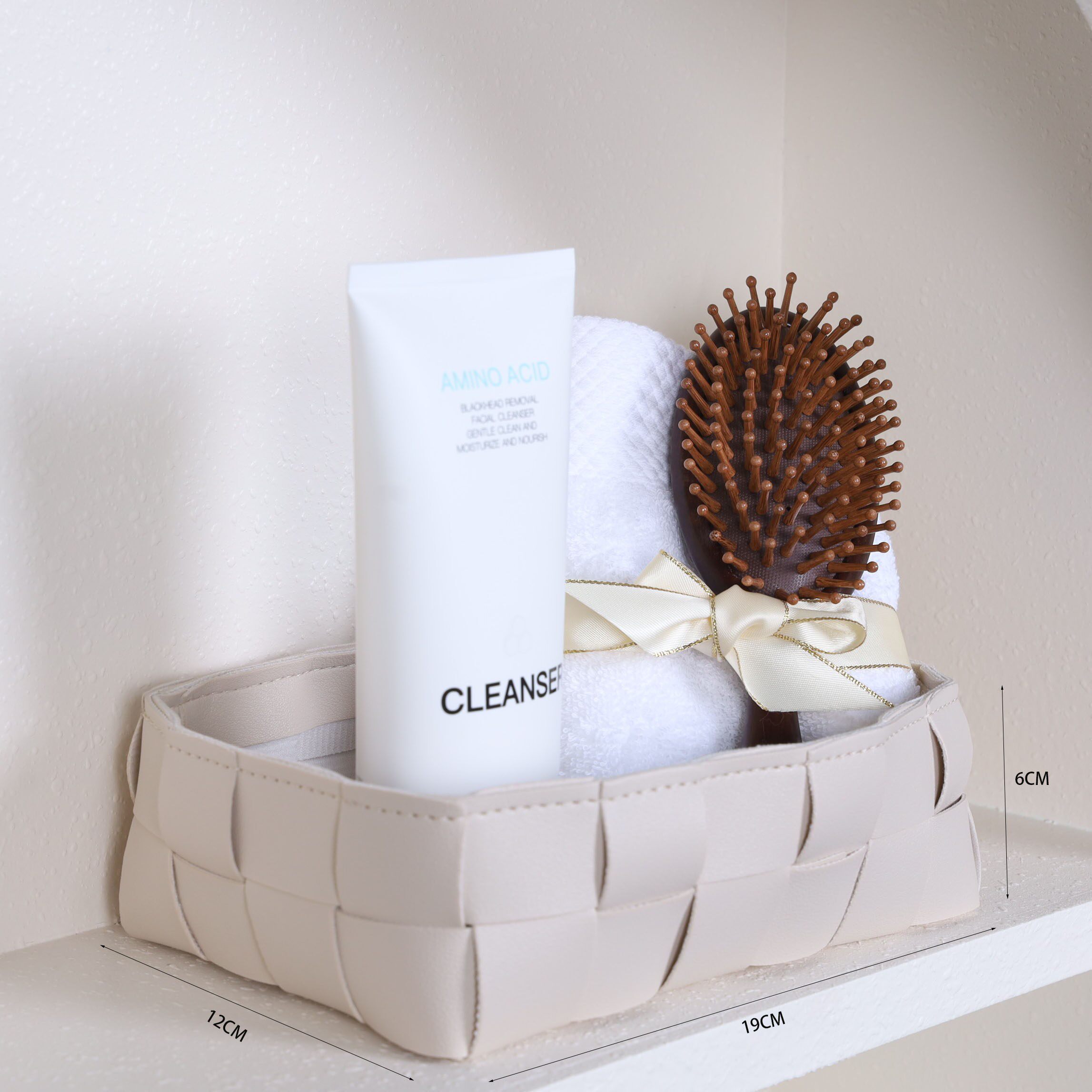 样板房摆件奶油风格浴室柜洗衣房沐浴用品皮篮子道具卫生间装饰品