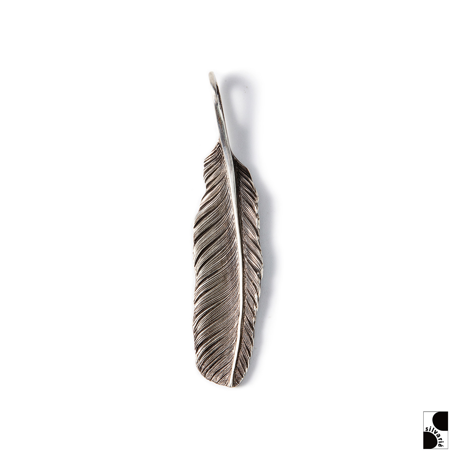 =silvarie=HOZHO 日本匠人手敲做旧 F10印第安式羽毛纯银吊坠男女
