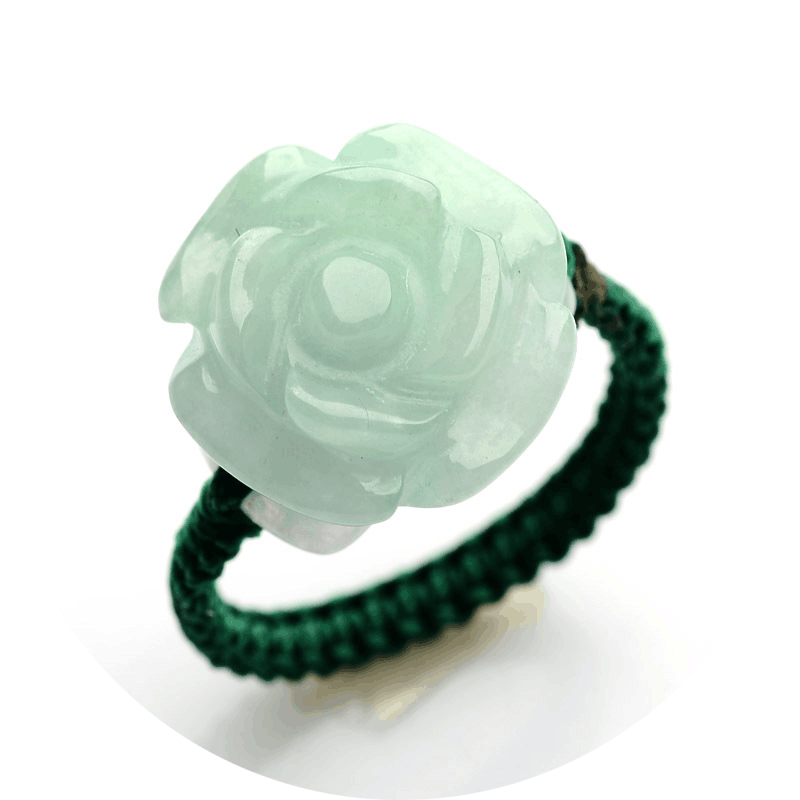 A货翡翠玫瑰 玉貔貅戒指 翡翠玉花女戒指 手工编制 包邮新品实拍