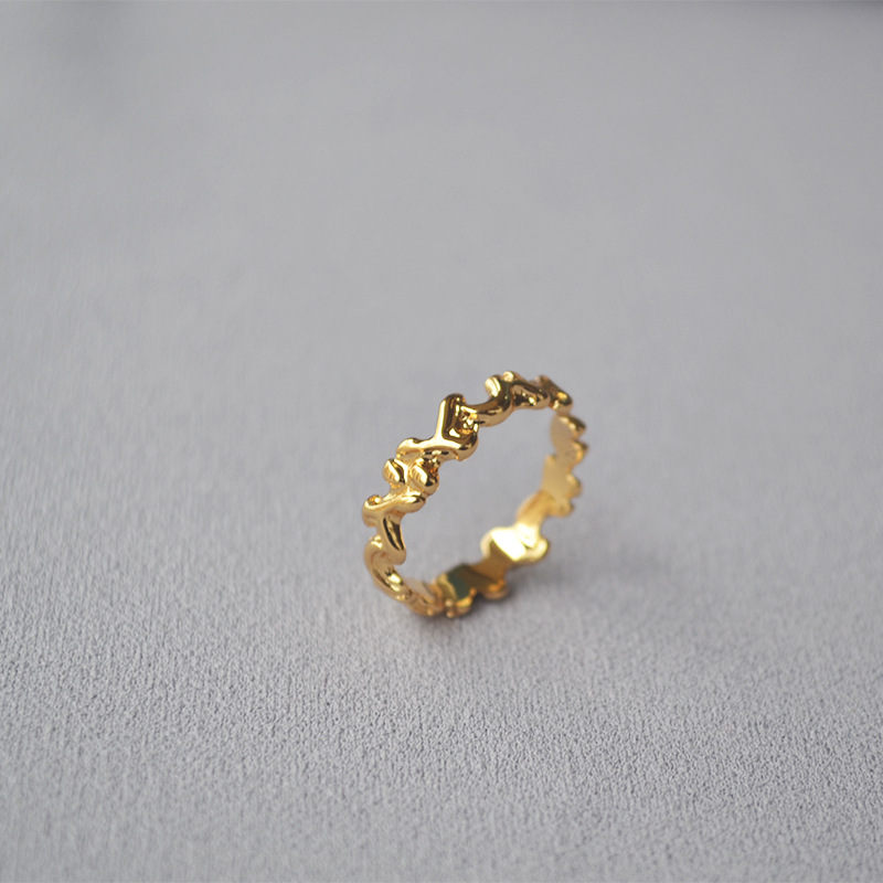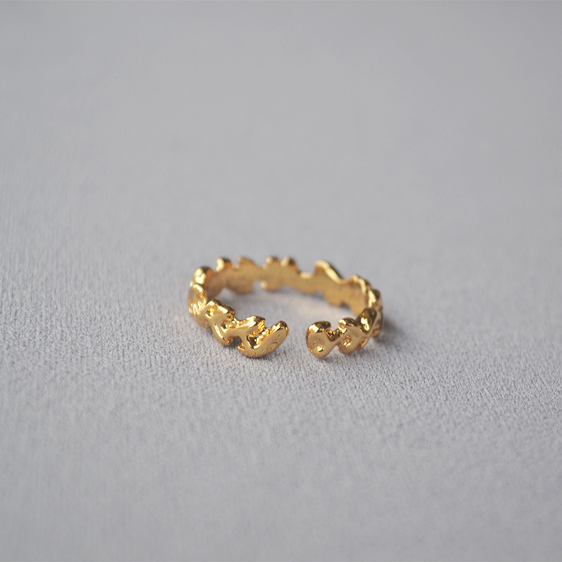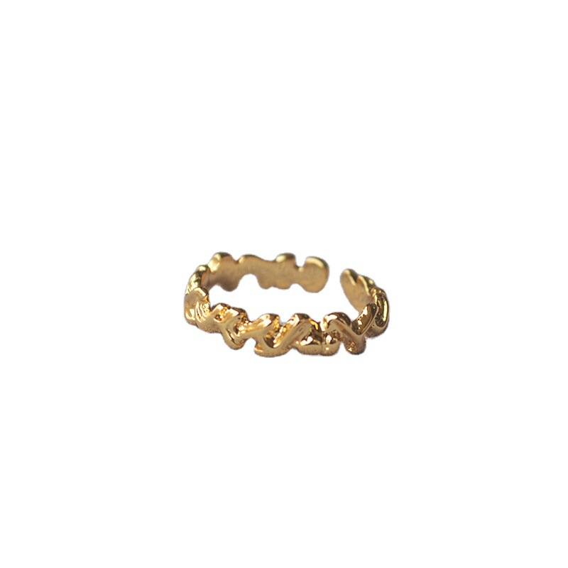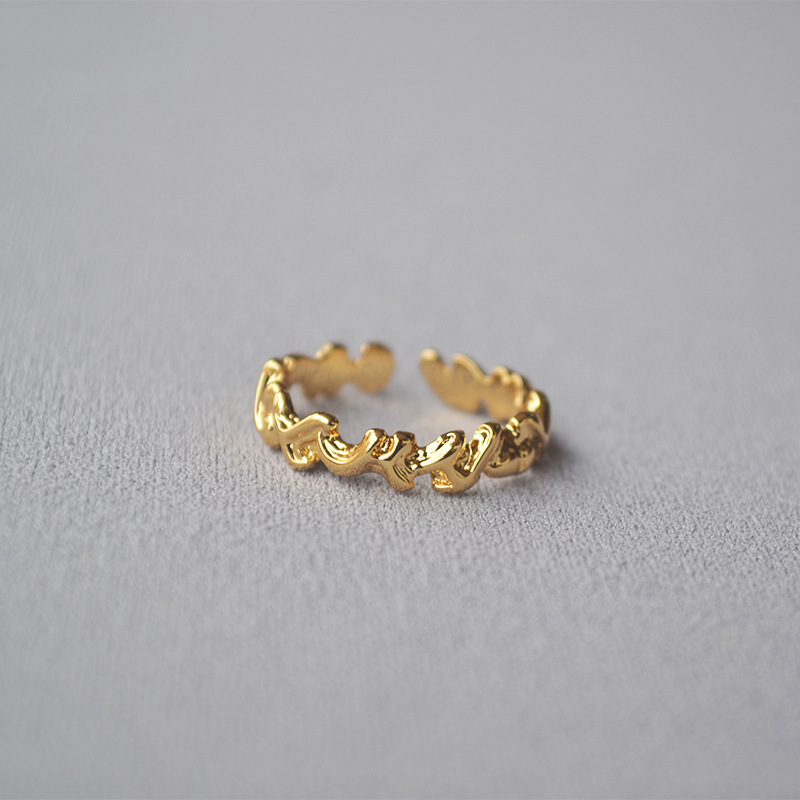 日韩版原创小众设计浪花造型简约百搭时尚黄铜镀金开口戒指食指戒