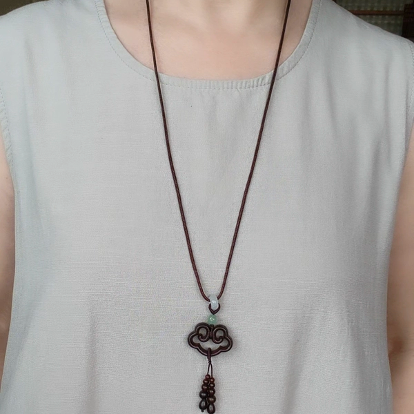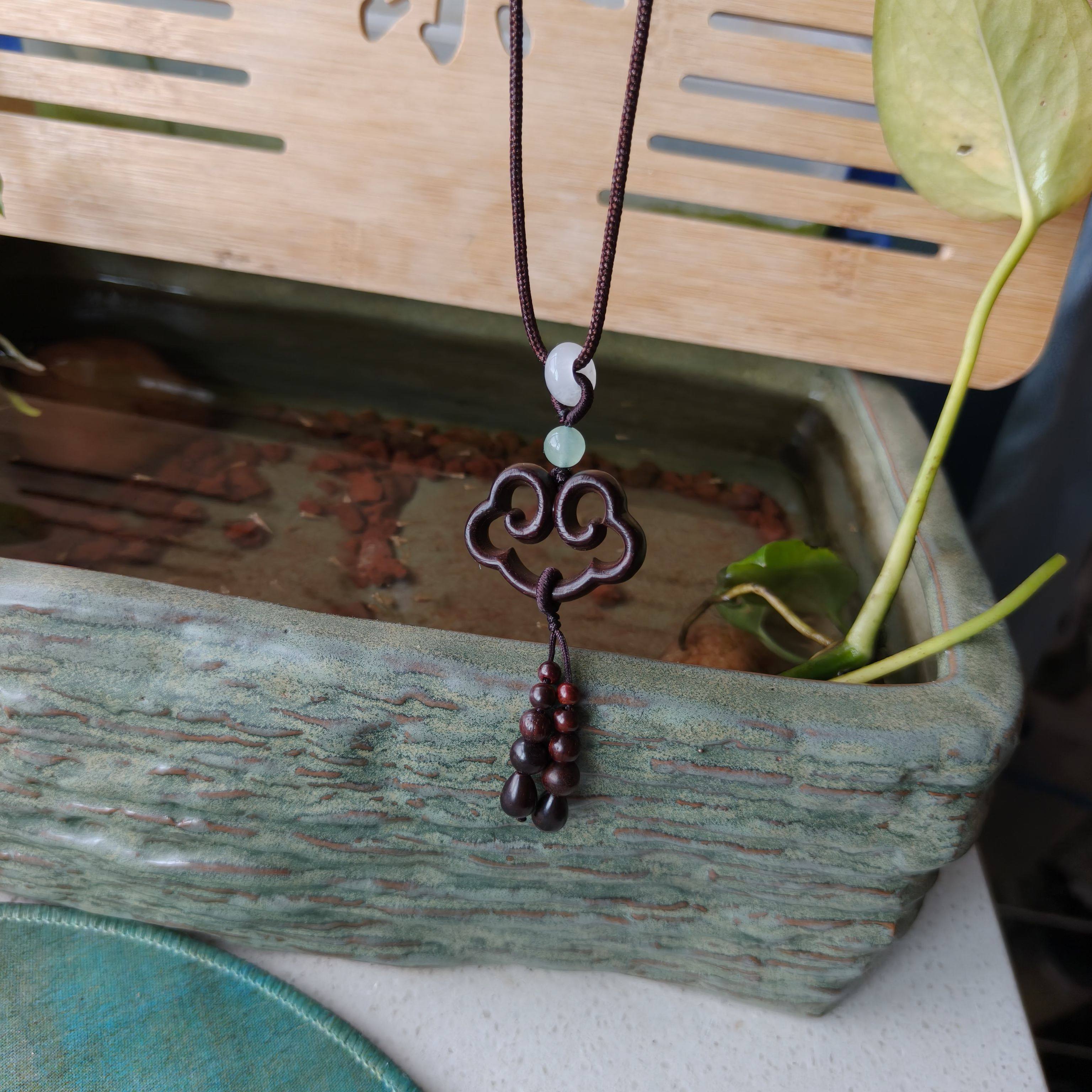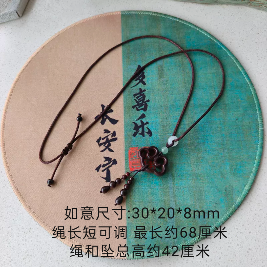 天然印度小叶紫檀木吉祥如意平安锁坠项链毛衣链女配棉麻文艺中式
