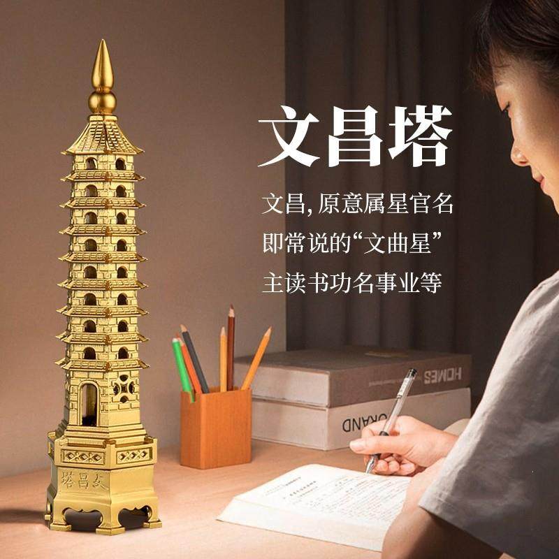 厂家 纯黄铜文昌塔摆件9九层13十三层书房桌面装饰品工艺品