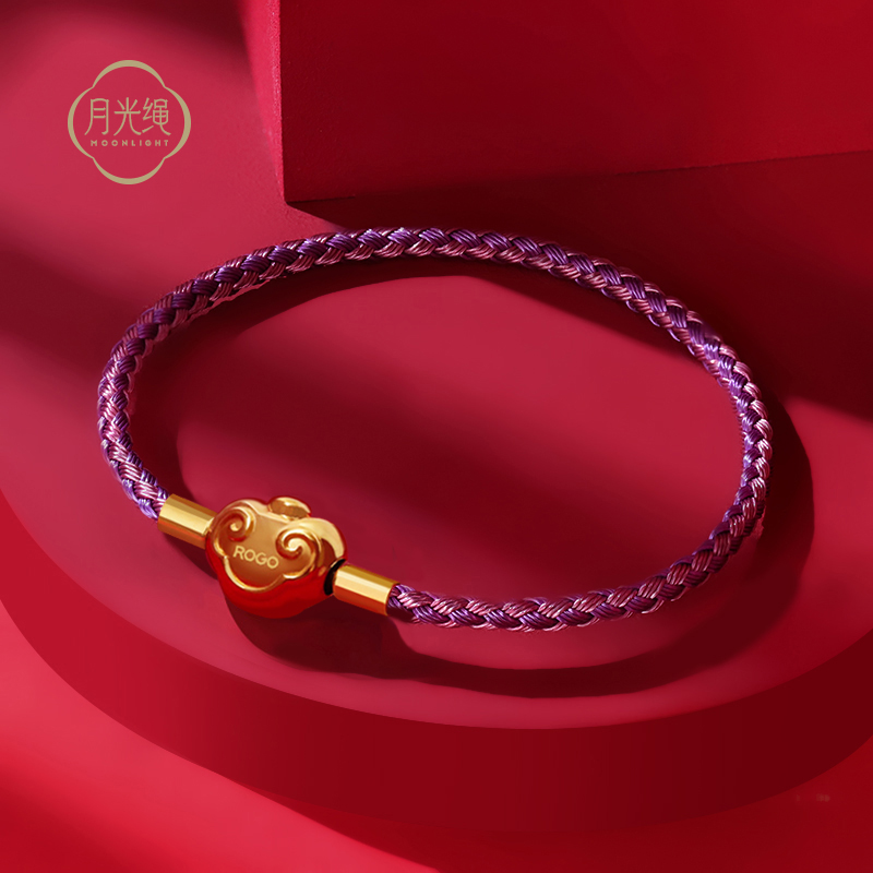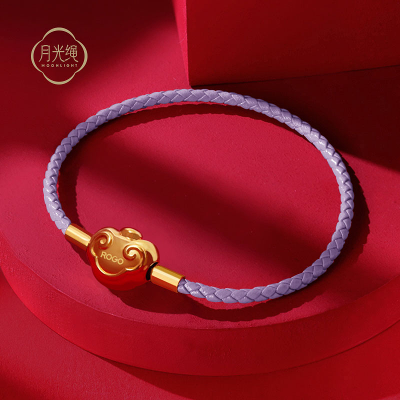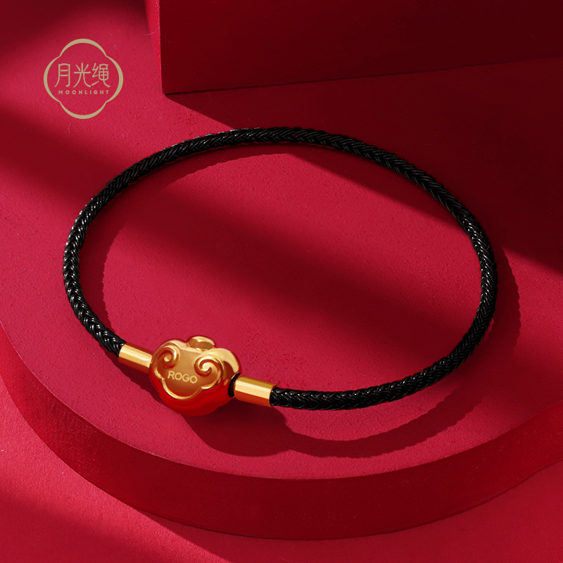 ROGO/月光如意转运珠皮绳手链男女本命年招财编织红绳穿黄金珠绳