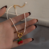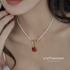 小立交 高品质强光白百何同款天然米粒珍珠红色樱桃琉璃吊坠项链