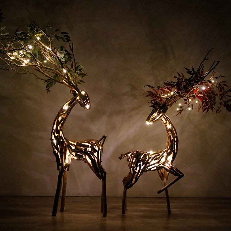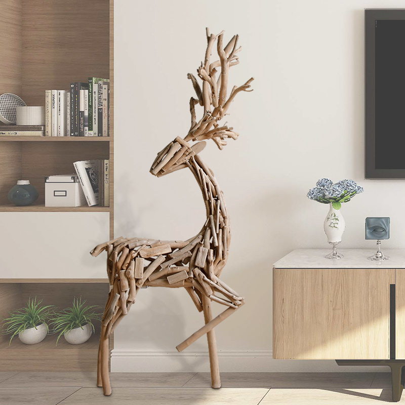 木质大鹿雕塑落地别墅橱窗v摆件民宿手工轻奢开业送礼户外家居装