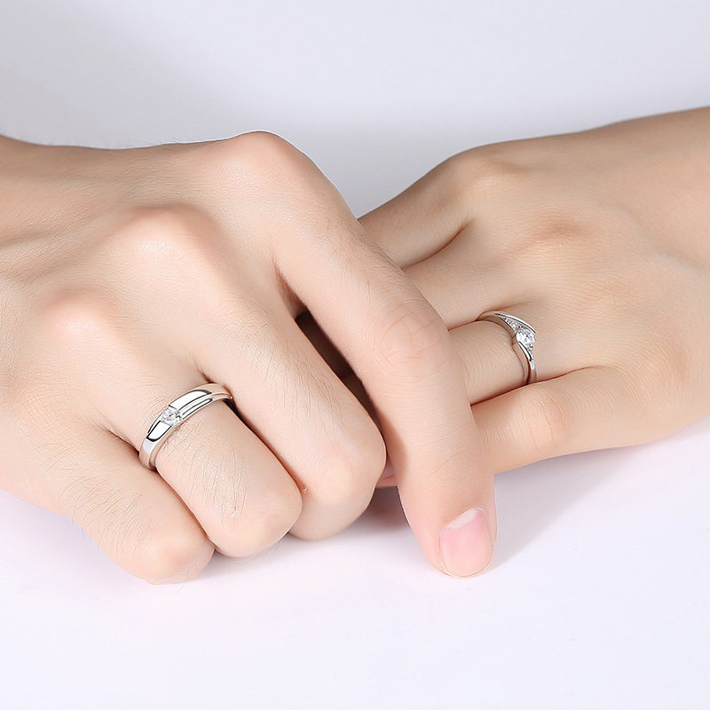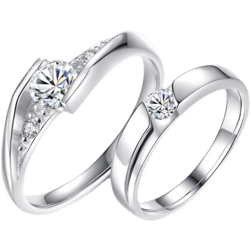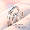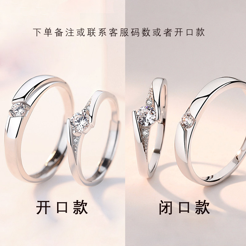 纯银闭口戒指镶钻情侣一对男女结婚轻奢戒指刻字七夕节礼物送女友