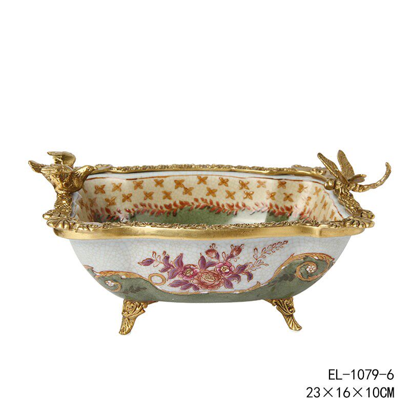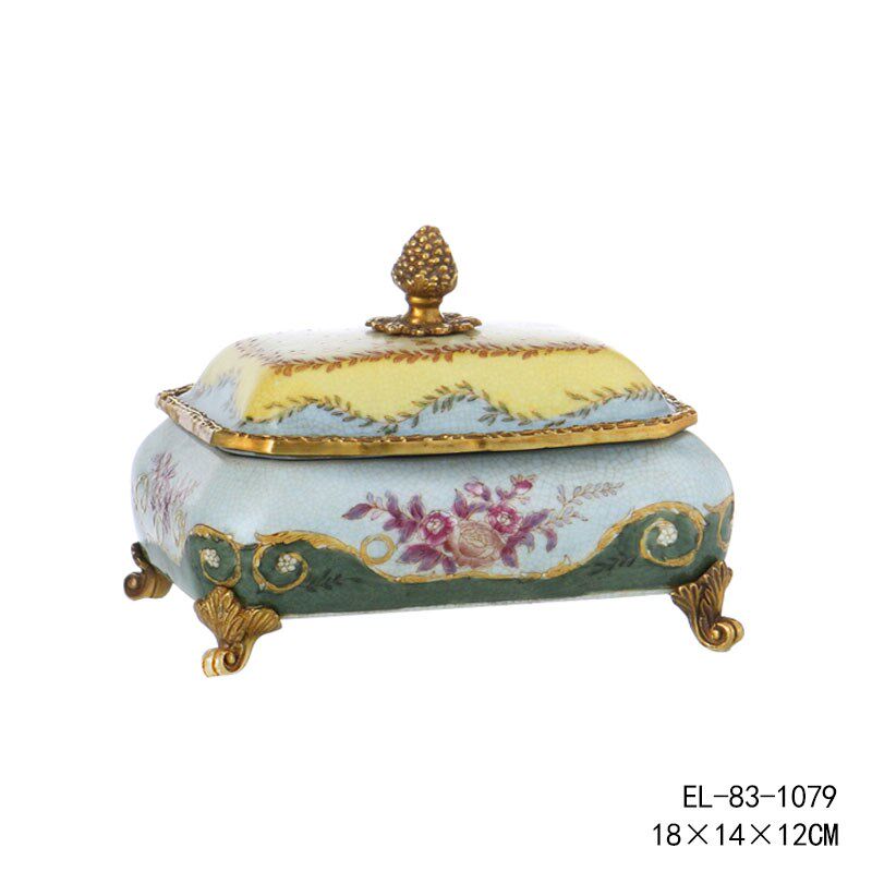 茱莉安法式艺术陶瓷配s铜手绘花卉盖盒别墅客厅桌面装饰摆件