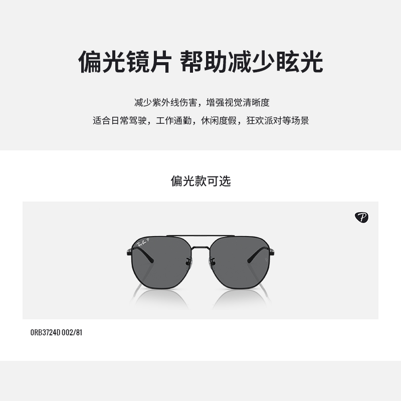 RayBan雷朋太阳镜双梁渐变开车户外防晒男女同款偏光墨镜0RB3724D