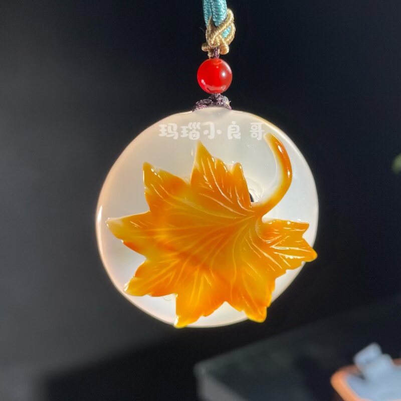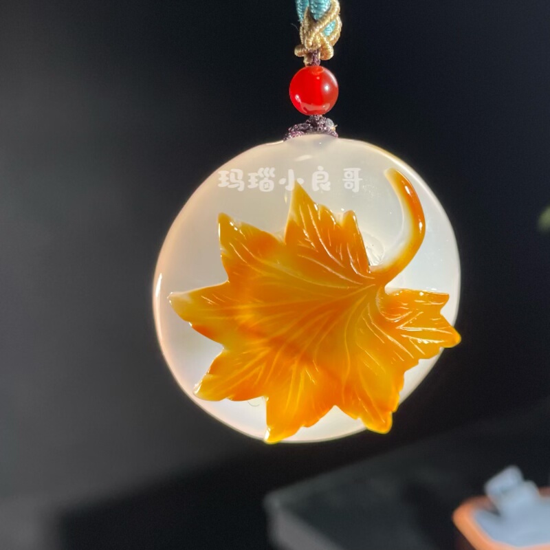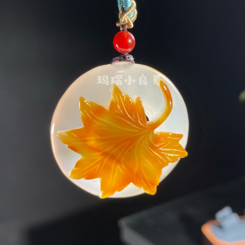 天然玛瑙俏色巧雕枫叶平安扣吊坠精工雕刻玉髓风情万种挂件男女款