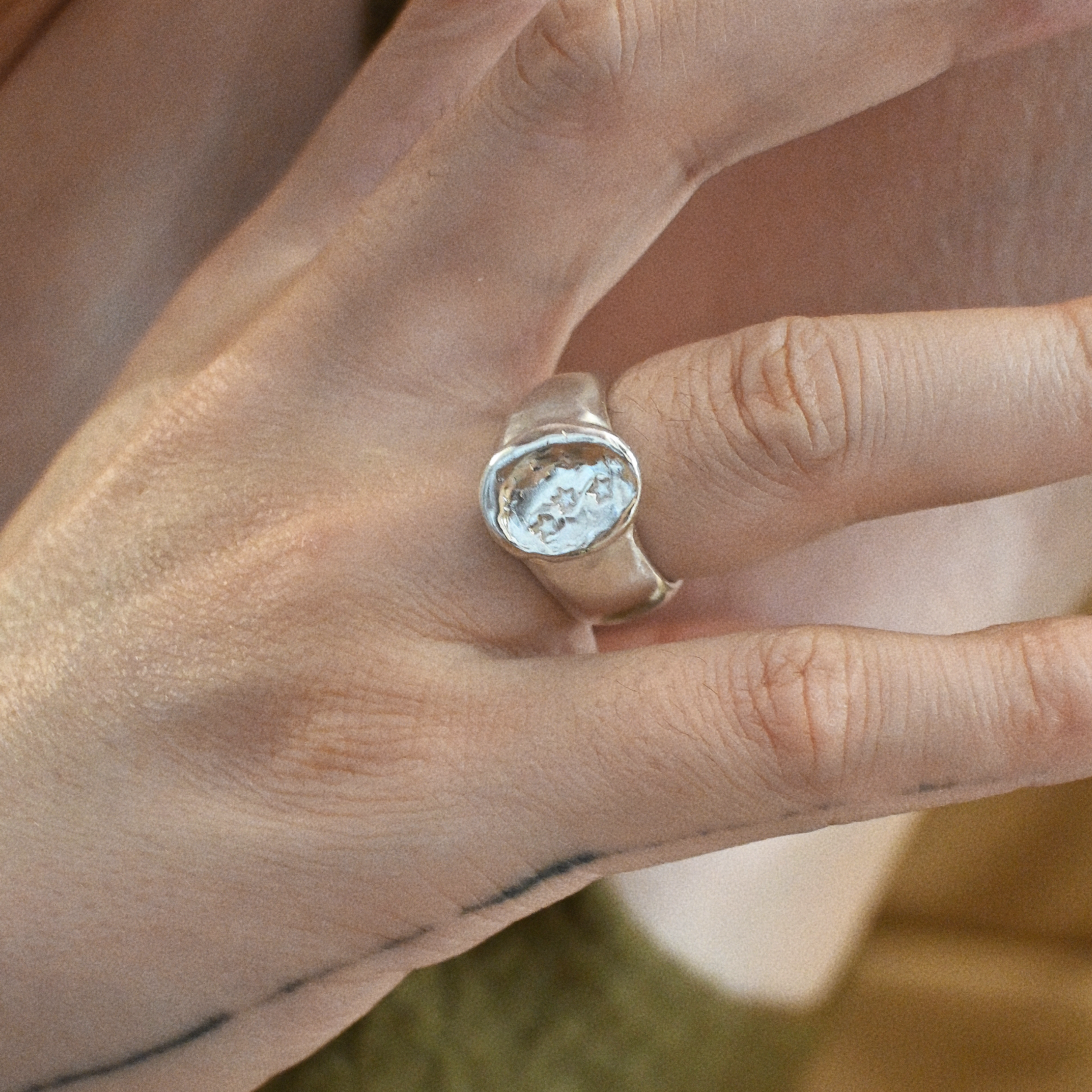 petitquatre纯手工定制通体轻奢925银星月系列宽素圈高级感戒指