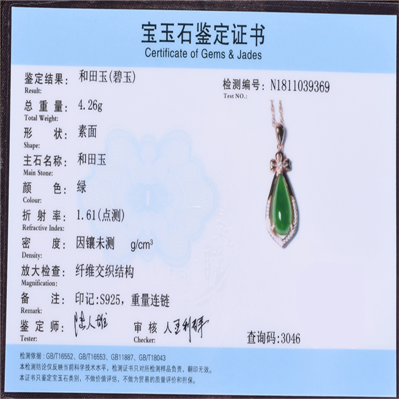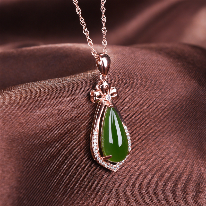 925银镶天然和田玉和田玉碧玉棱形吊坠 女士款玉石挂件玉蜀黍