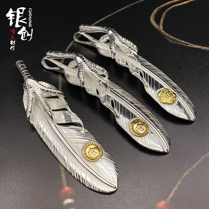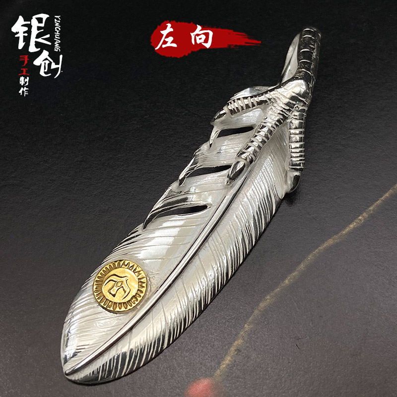 银创鹫见太郎二代银爪蔷薇点金飞行羽毛吊坠s925纯银情侣银饰项链