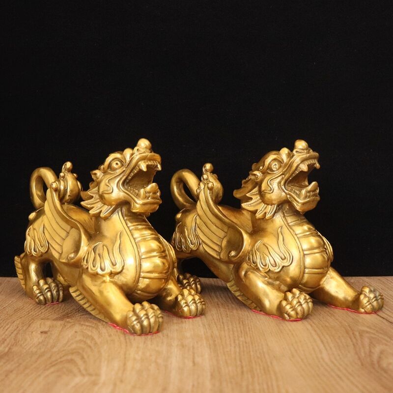 纯铜貔貅摆件一对客厅办公室铜皮丘工艺品桌面家居摆设招财皮休