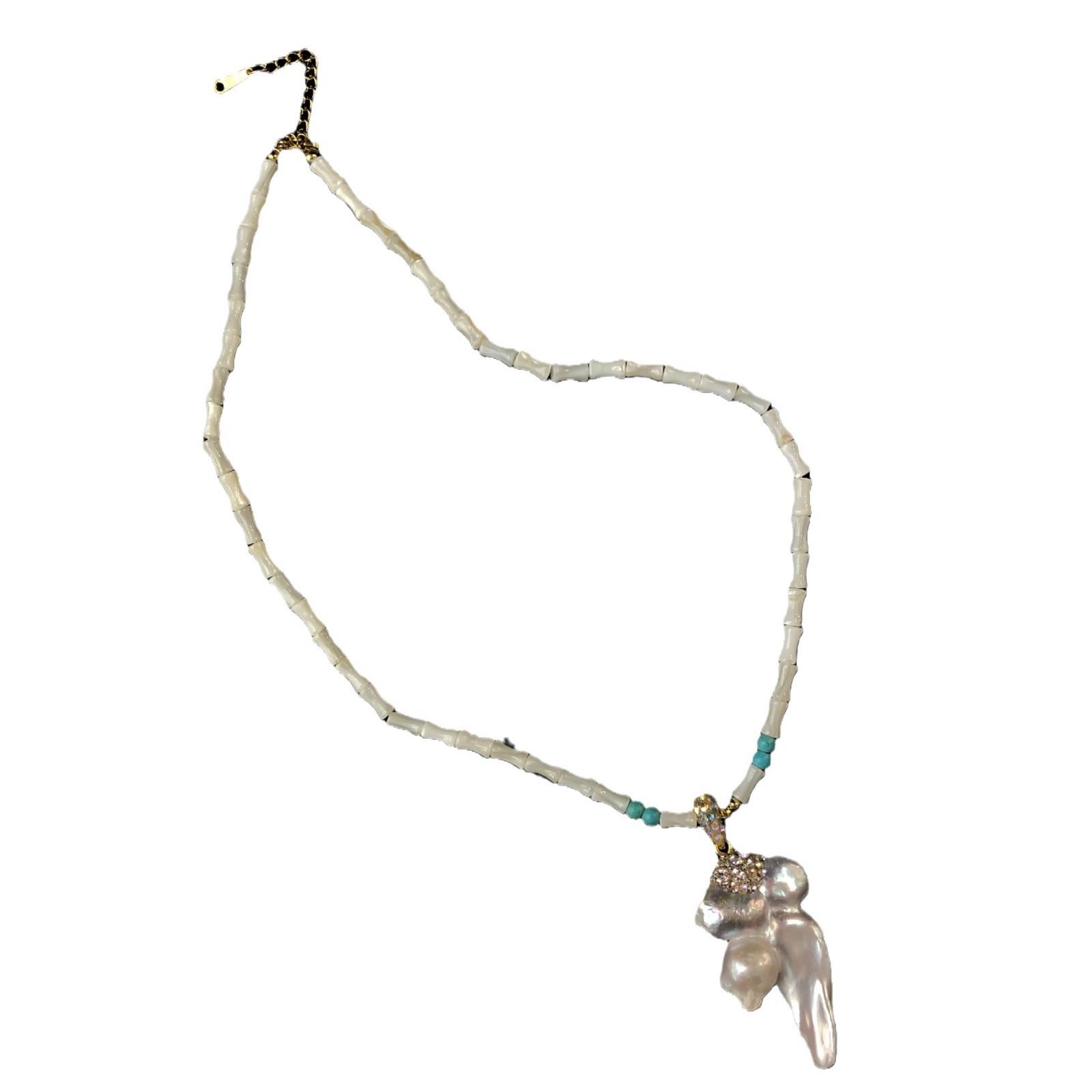 白色贝壳竹节项链彩色异形淡水珍珠吊坠时尚新款设计独特厂家