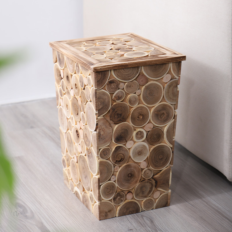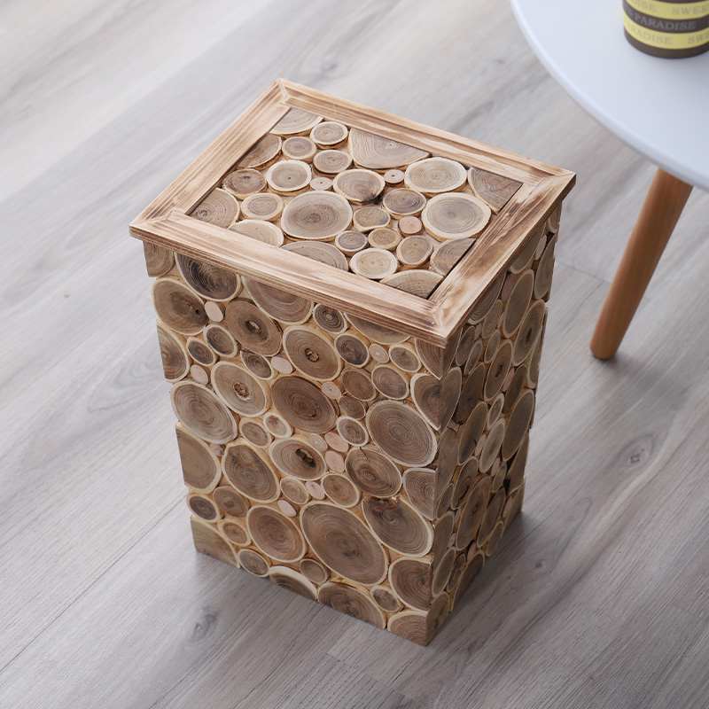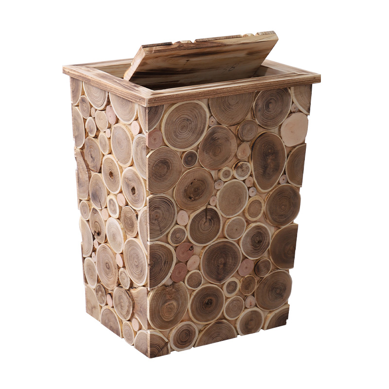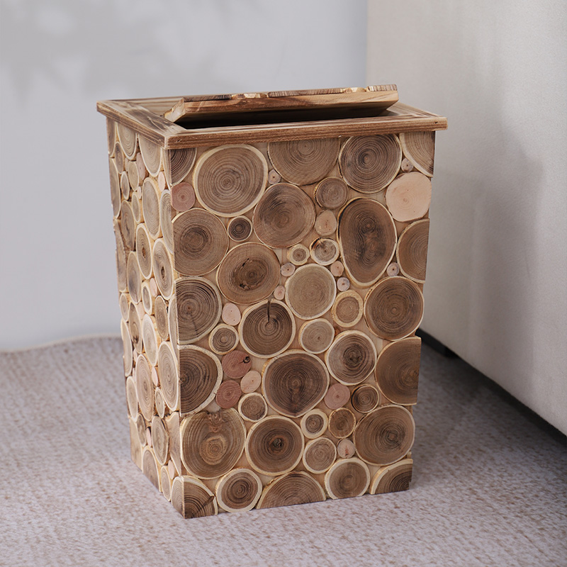 原木垃圾桶民宿翻盖创意垃圾筒简约木制日式酒店ins大号纸篓装饰