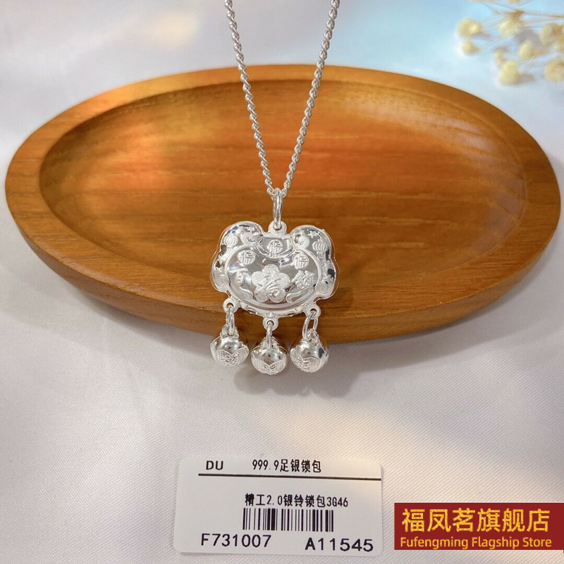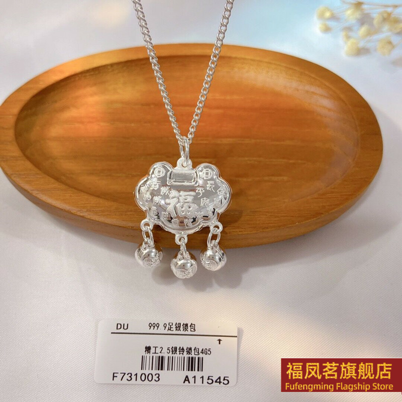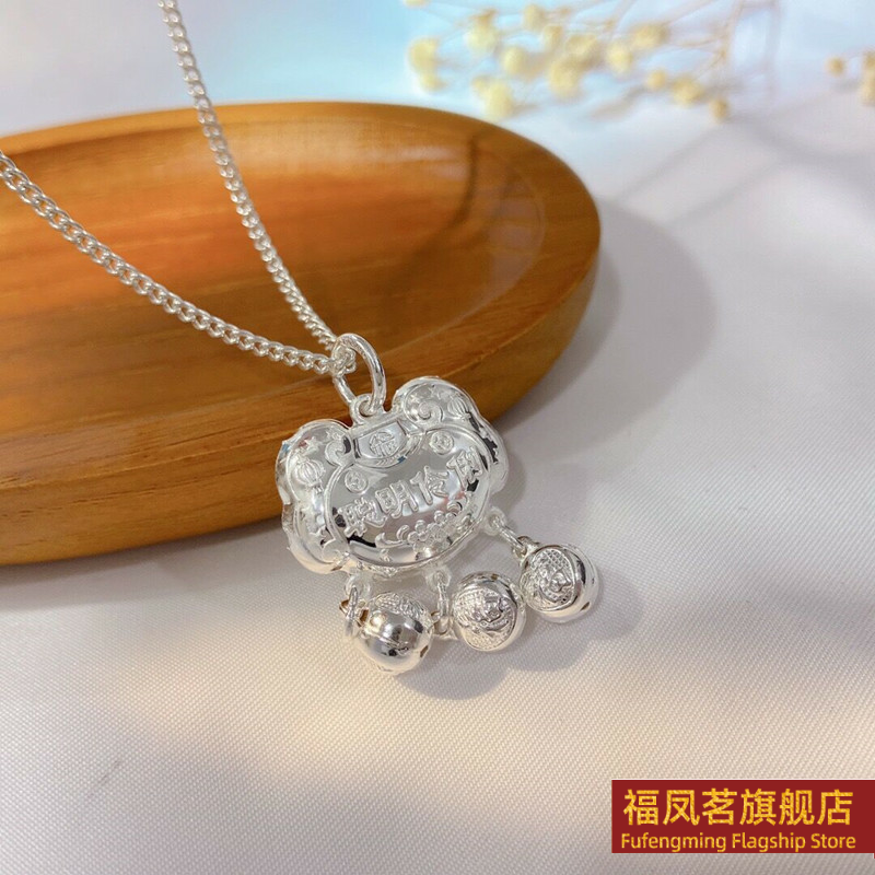 正生男女宝宝长命百福铃铛锁包纯银项链足银9999新生儿满月周岁礼