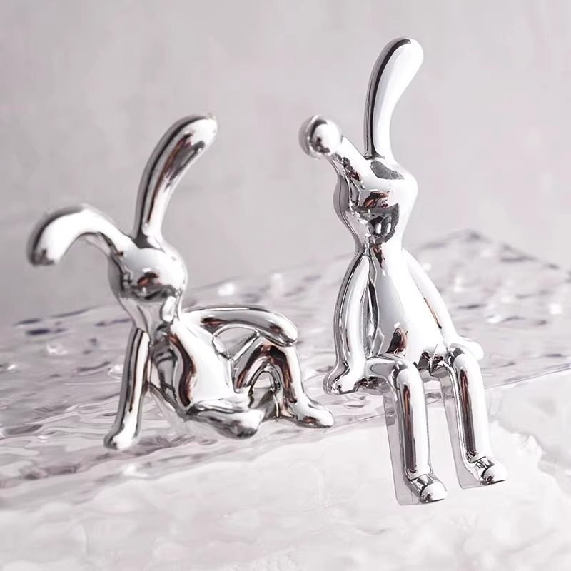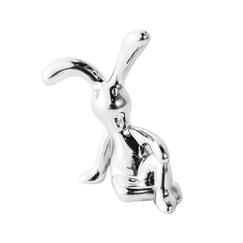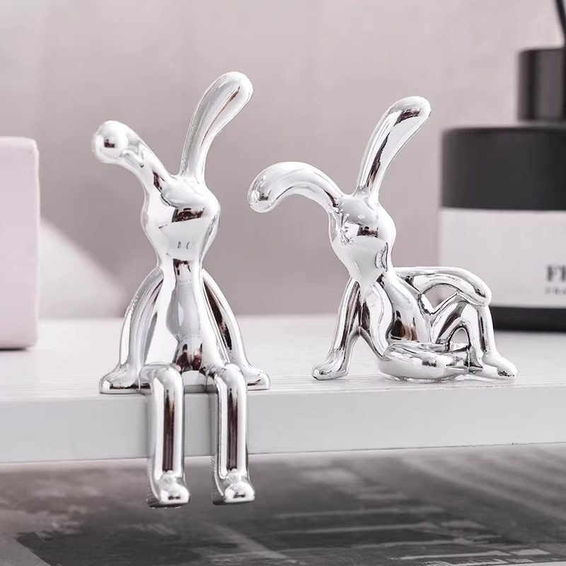 北欧现代电镀长耳兔摆件高级感轻奢车载客厅潮玩装饰家居软装摆件