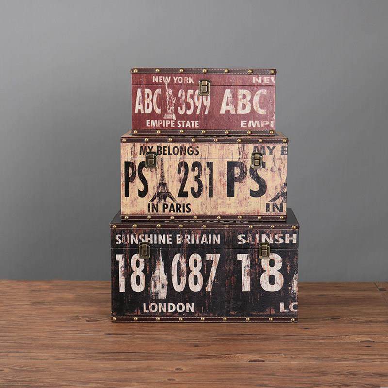 创意大号覆古做旧木箱子皮箱收纳箱整理收纳箱陈列拍照道具