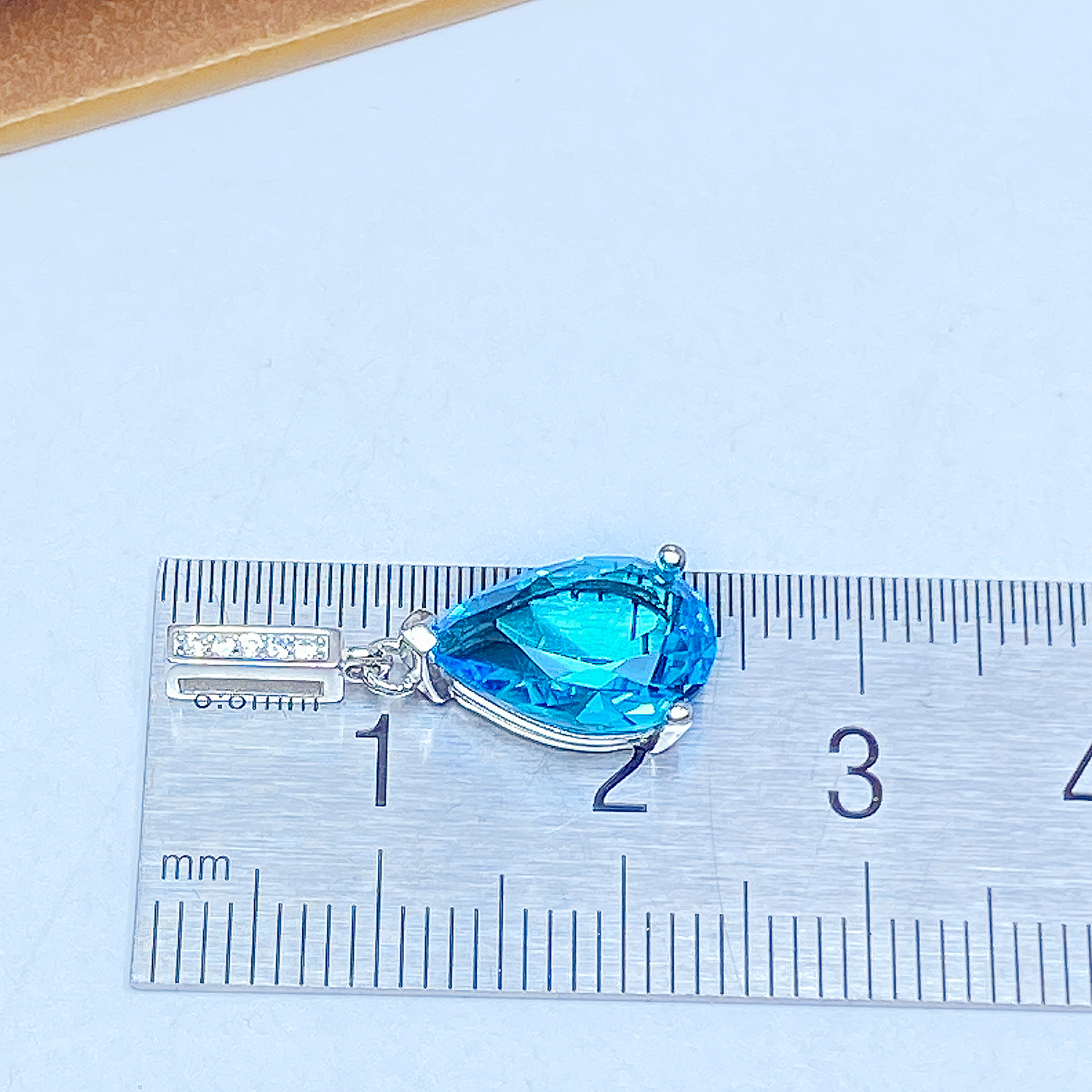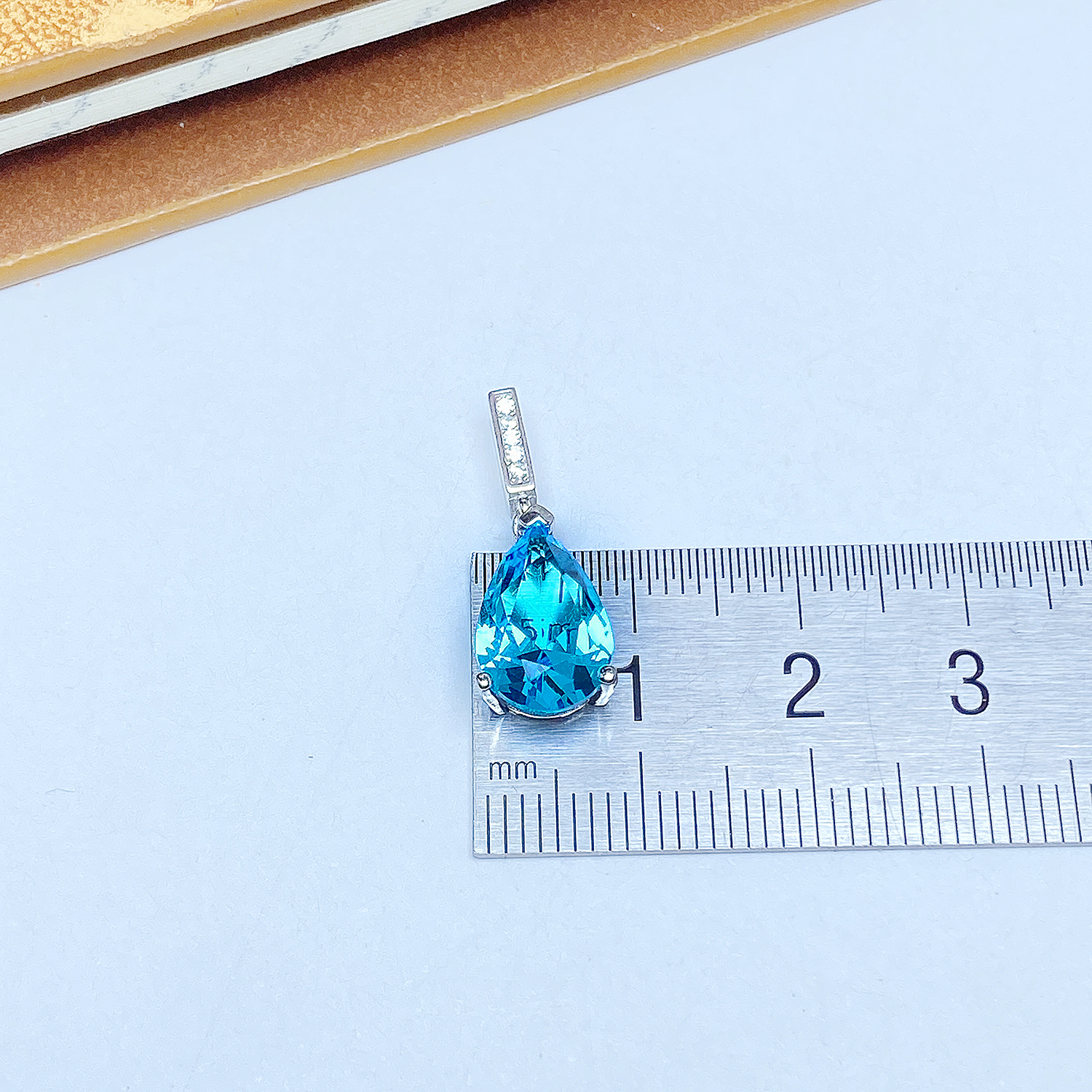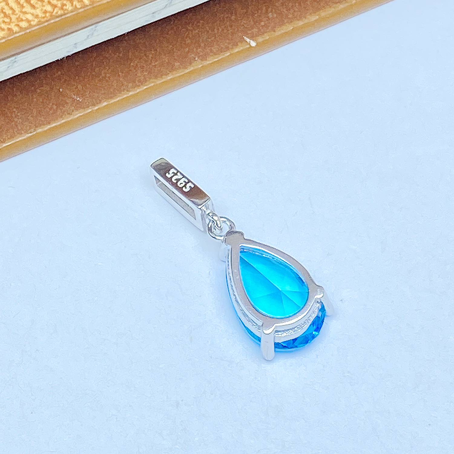 S925银水滴形项链锁骨链颈链饰品项饰choker黑绳蓝石头DIY配件