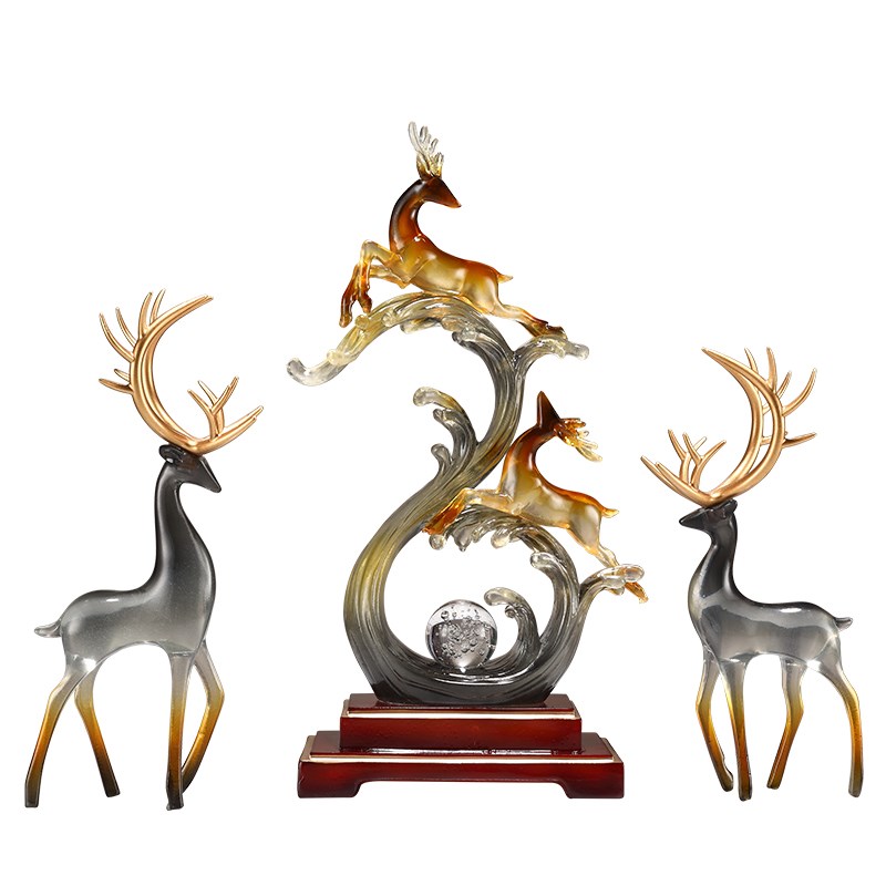 风生水起麋鹿招财办公室桌面摆件入户玄关客厅酒柜装饰品乔迁礼品