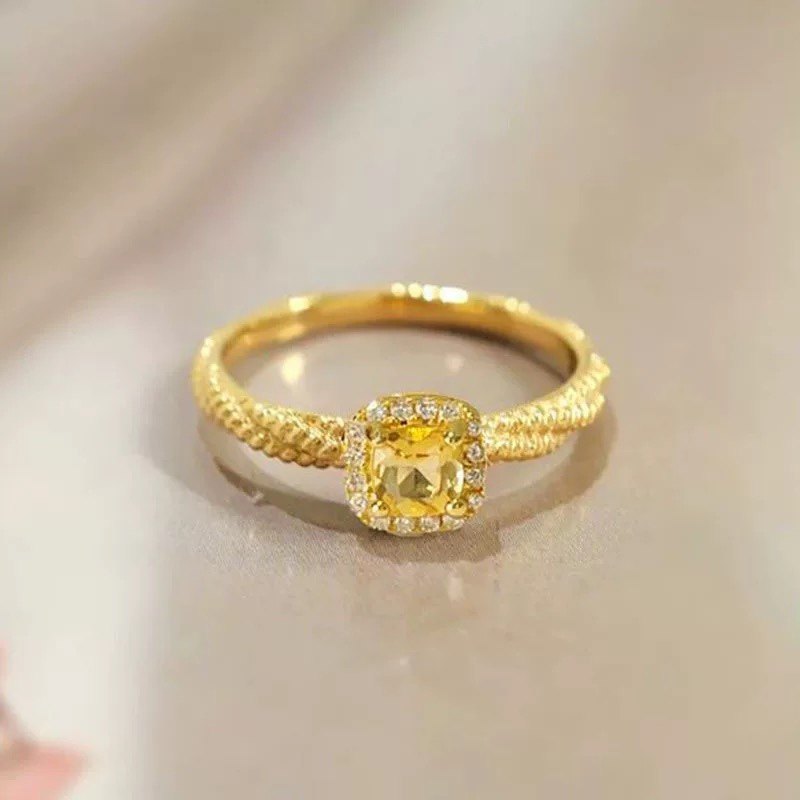 925纯银小方糖戒指女小众设计感食指戒指环轻奢镶钻尾戒2025新款