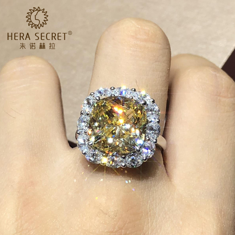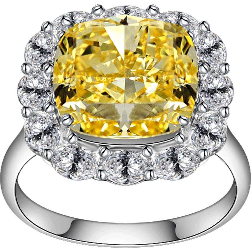 新款18k白金戒指8.5克拉枕方黄钻女FRC豪华群镶名媛贵妇珠宝定制