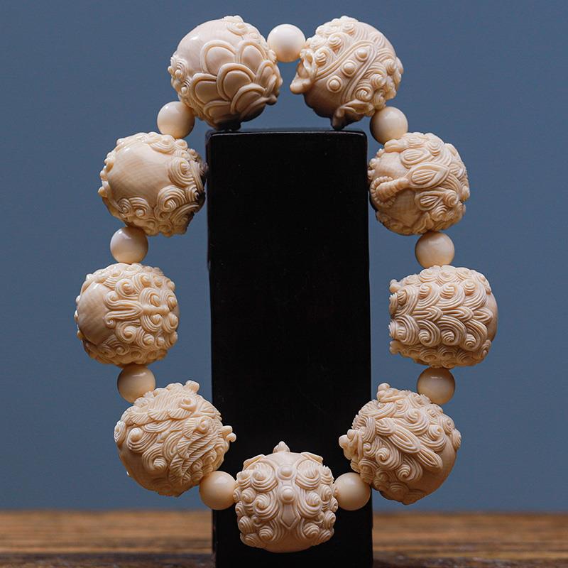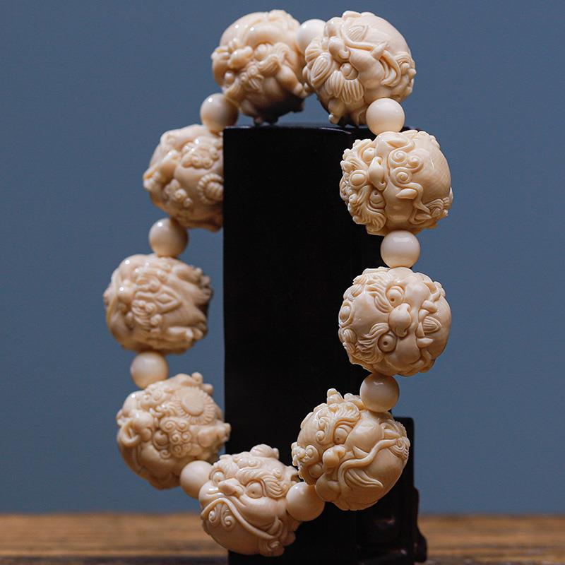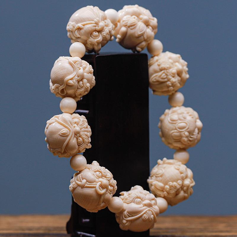 天然猛犸牙雕手串龙生九子纯手工雕刻招财饰品文玩收藏送礼