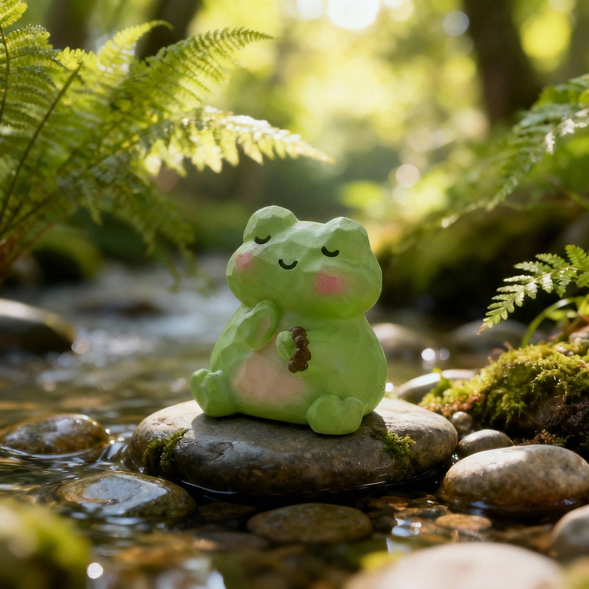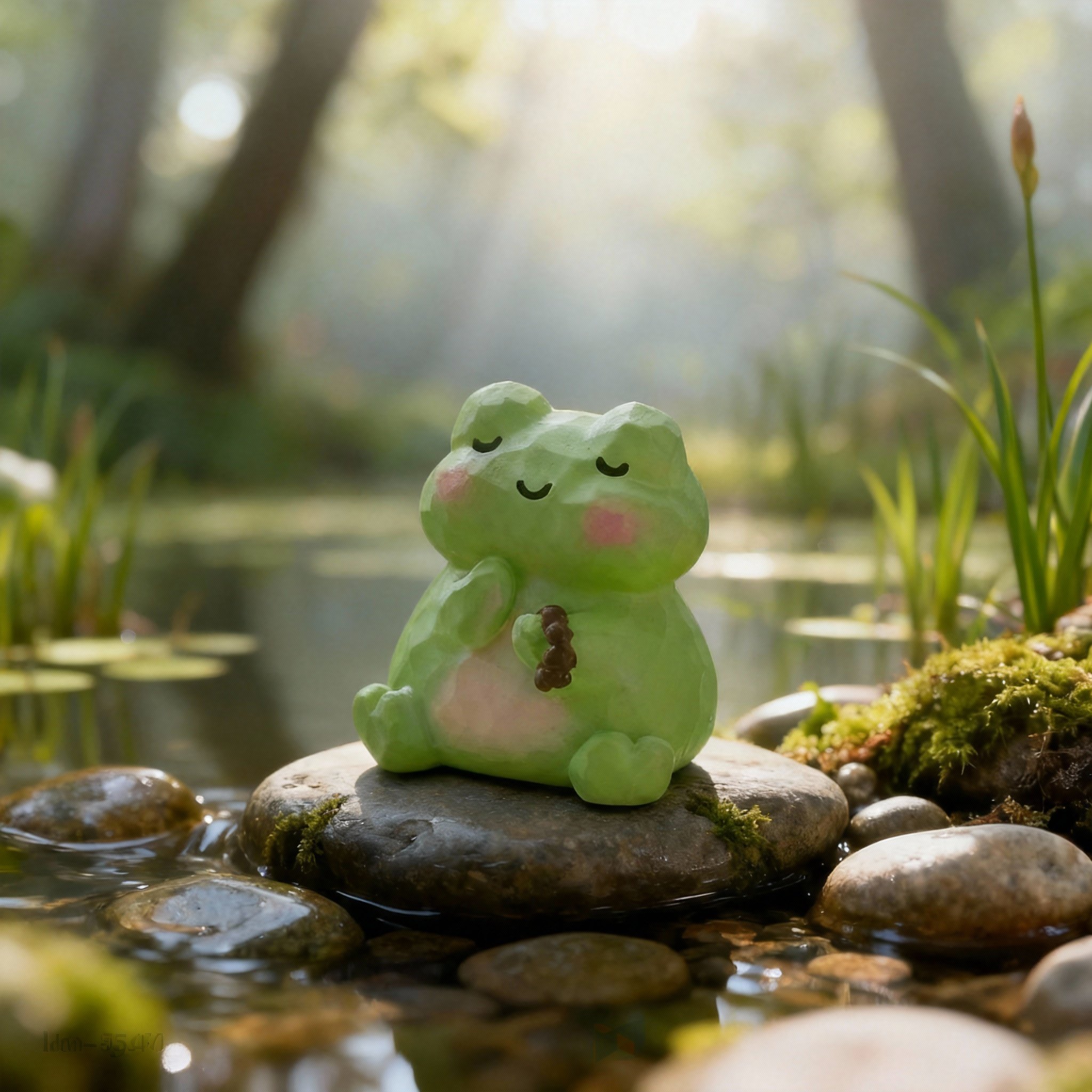 可爱青蛙造型装饰摆件户外森林小溪边萌趣桌面工艺品