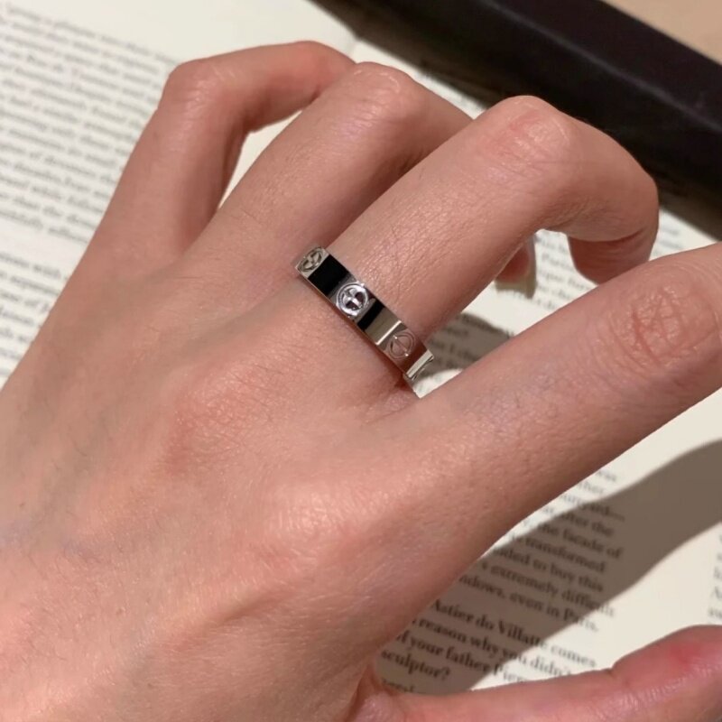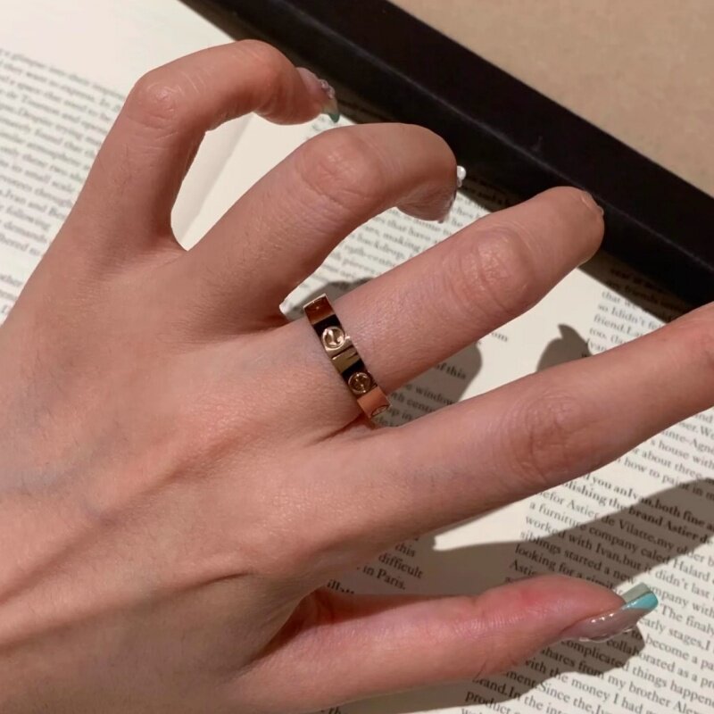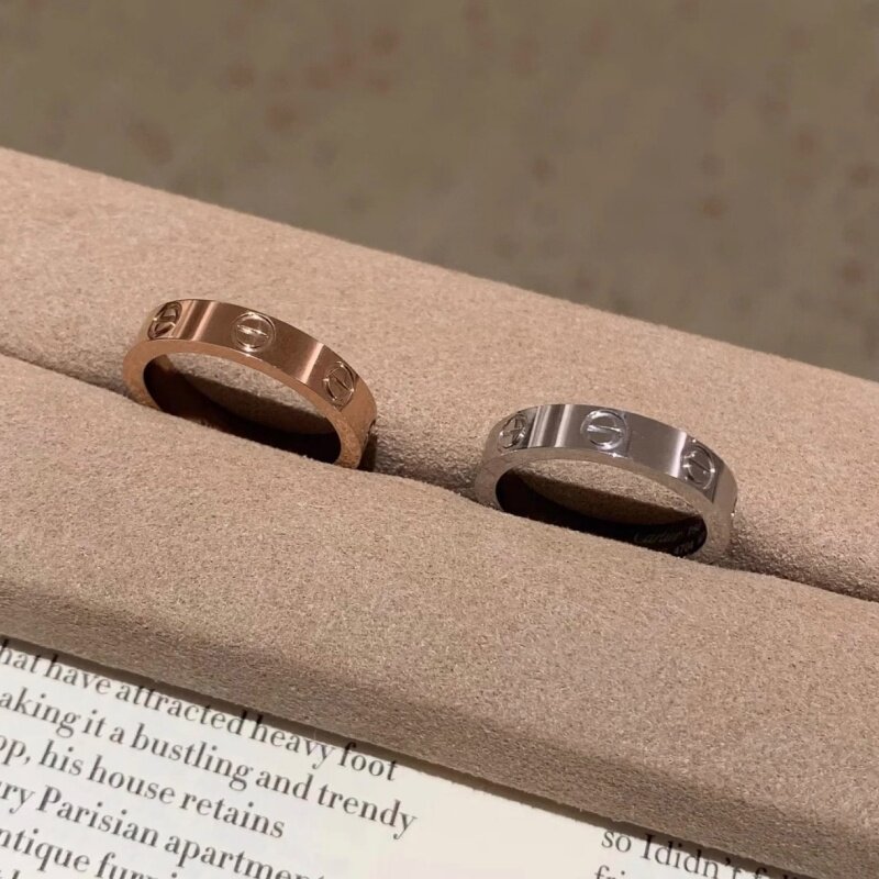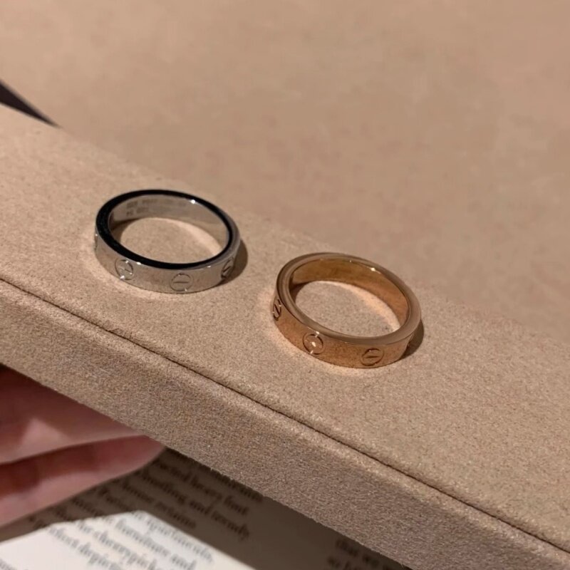 钉子戒指男女18K玫瑰金love满天星情侣对戒指环黄金白金窄版宽版