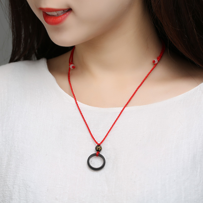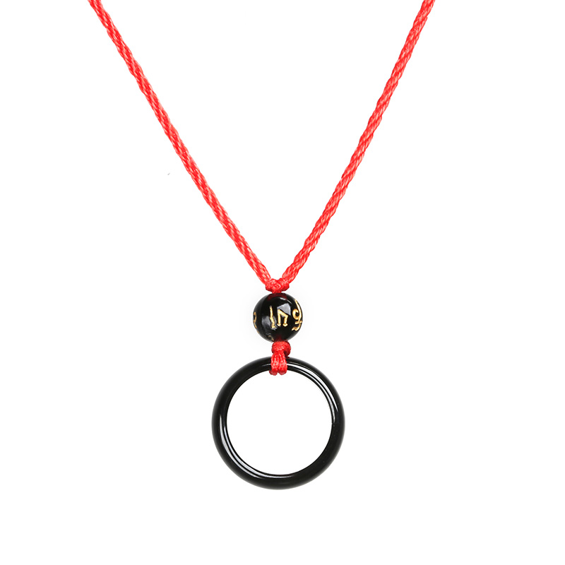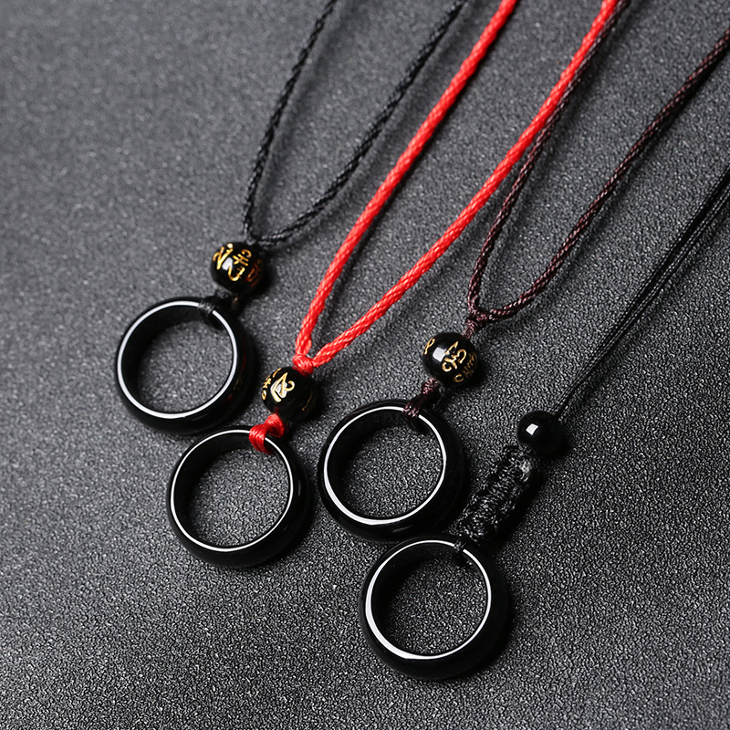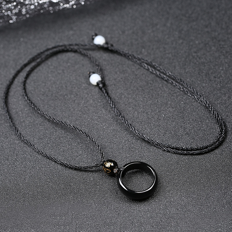 黑曜石指环吊坠潮男女项链个性简约网红锁骨链饰品男女款生日礼物