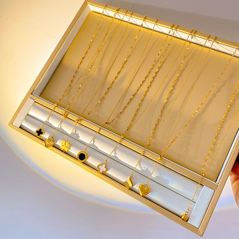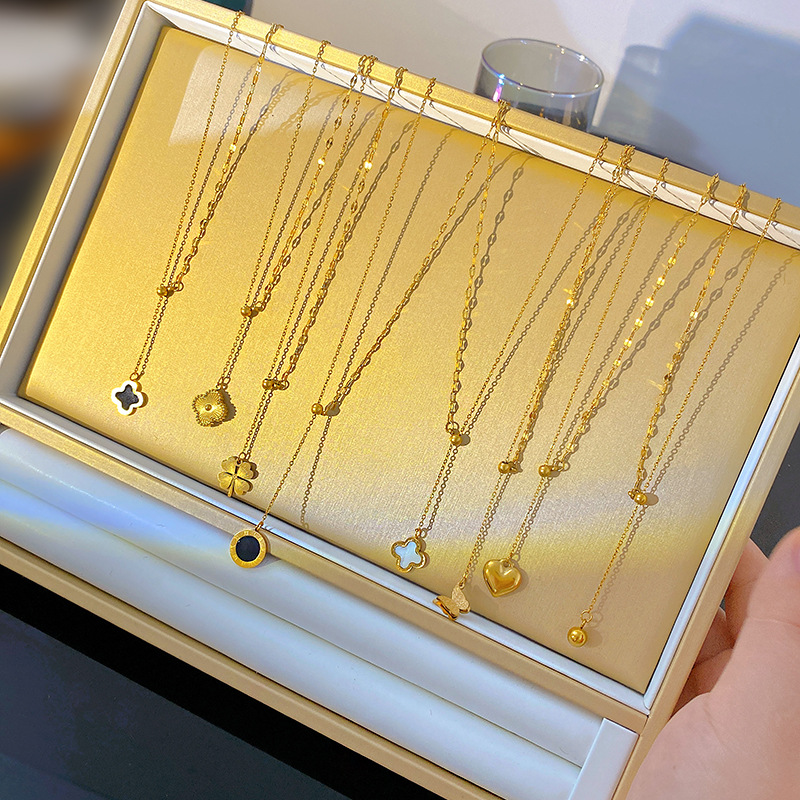 简约百搭精致小众气质轻奢金色四叶草爱心项链女多款式吊坠锁骨链